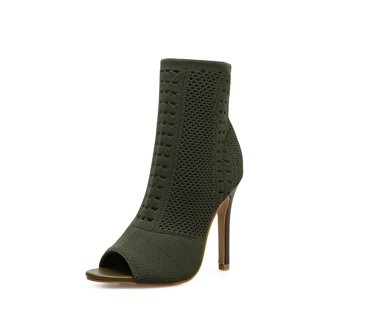 Dam Ankelstövlar Peeptoe Stretch Gummi Hög Klack
