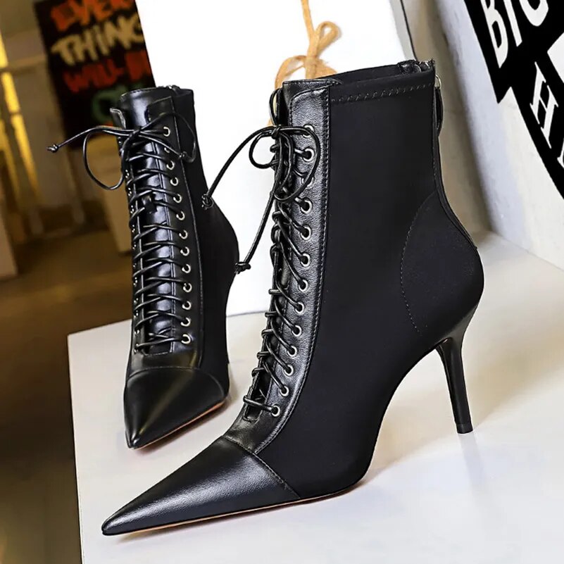 Dam Ankelstövlar Smala Klackar PU Gummi
