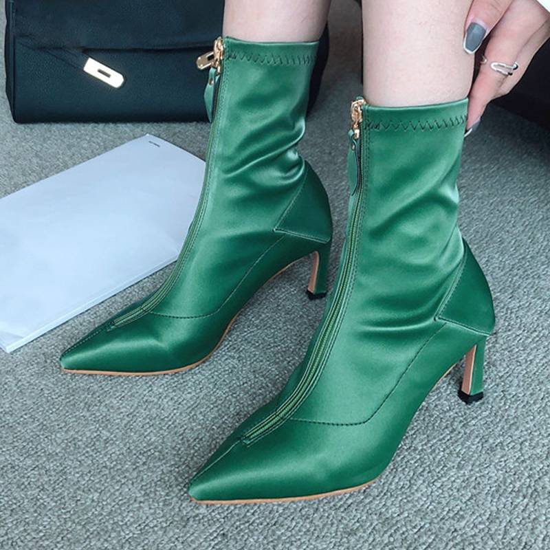 Dam Ankelstövlar Spetsig Tå PU-Läder Plattform 7 cm