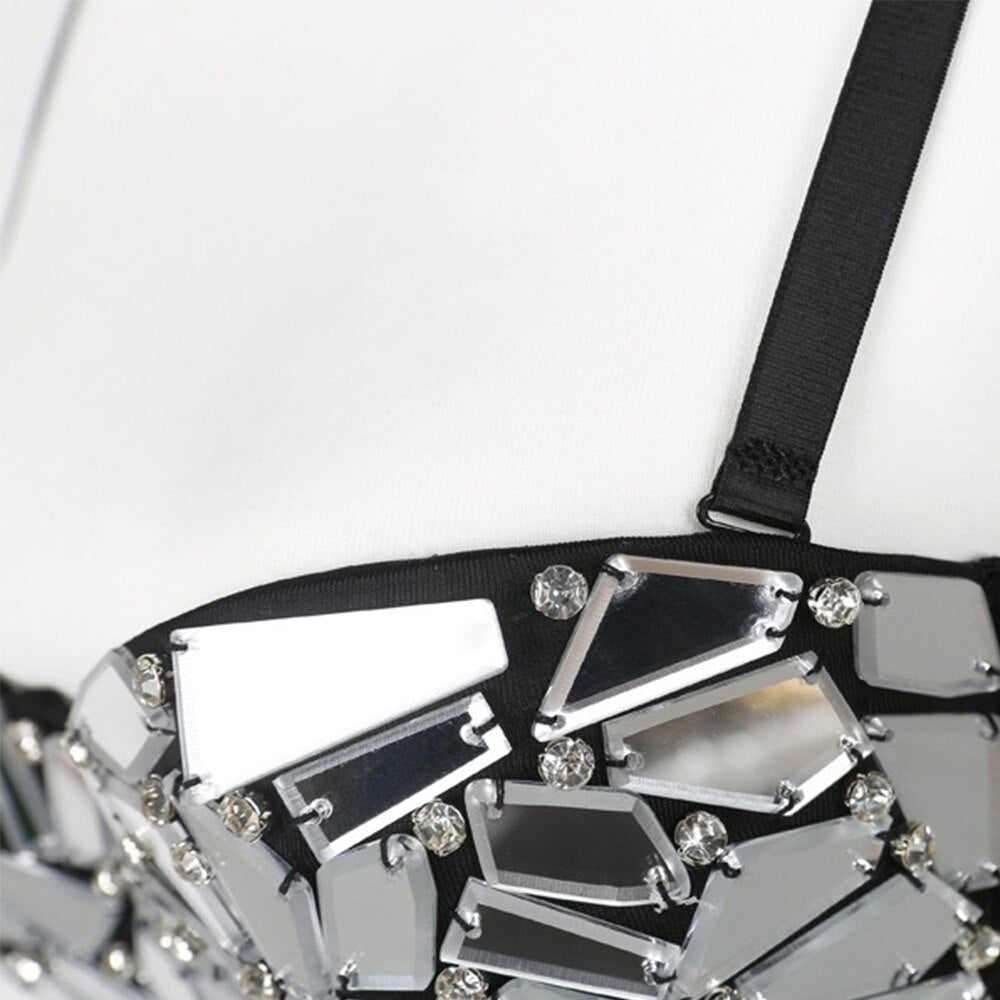 Denna ärmlösa topp är en perfekt kombination av stil och elegans, vilket gör att du kan känna dig självsäker och vacker. Med sina konstnärliga strassdetaljer fångar den verkligen uppmärksamhet och ger en extra glans till din outfit. Perfekt för en kväll ute eller en speciell tillställning.