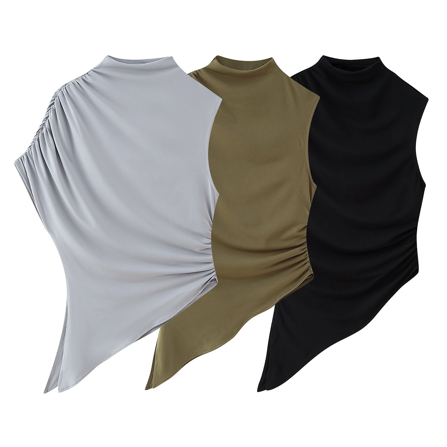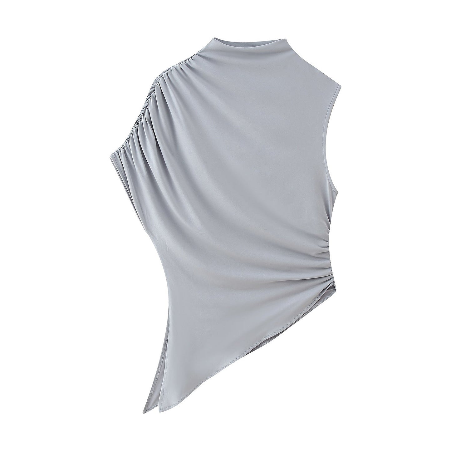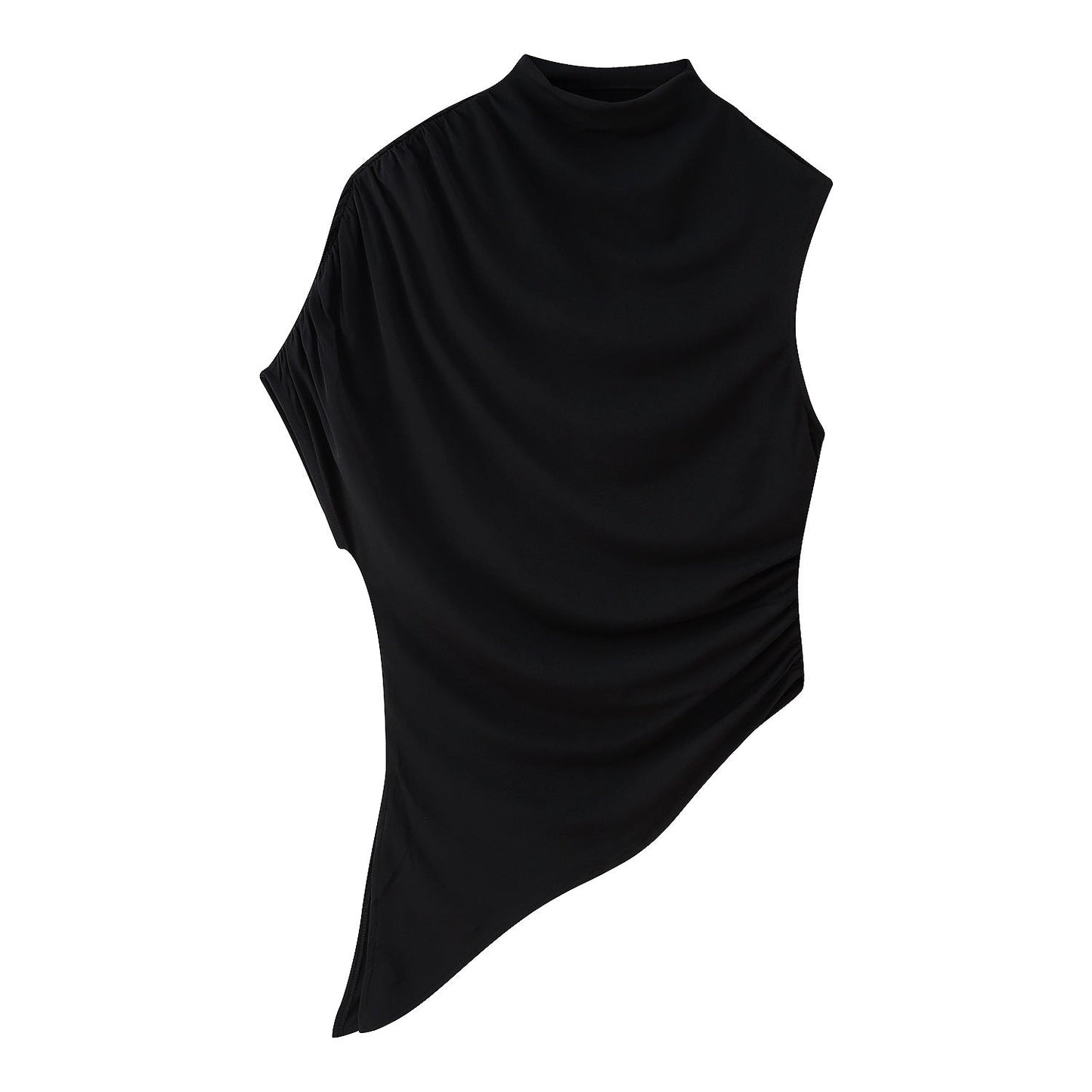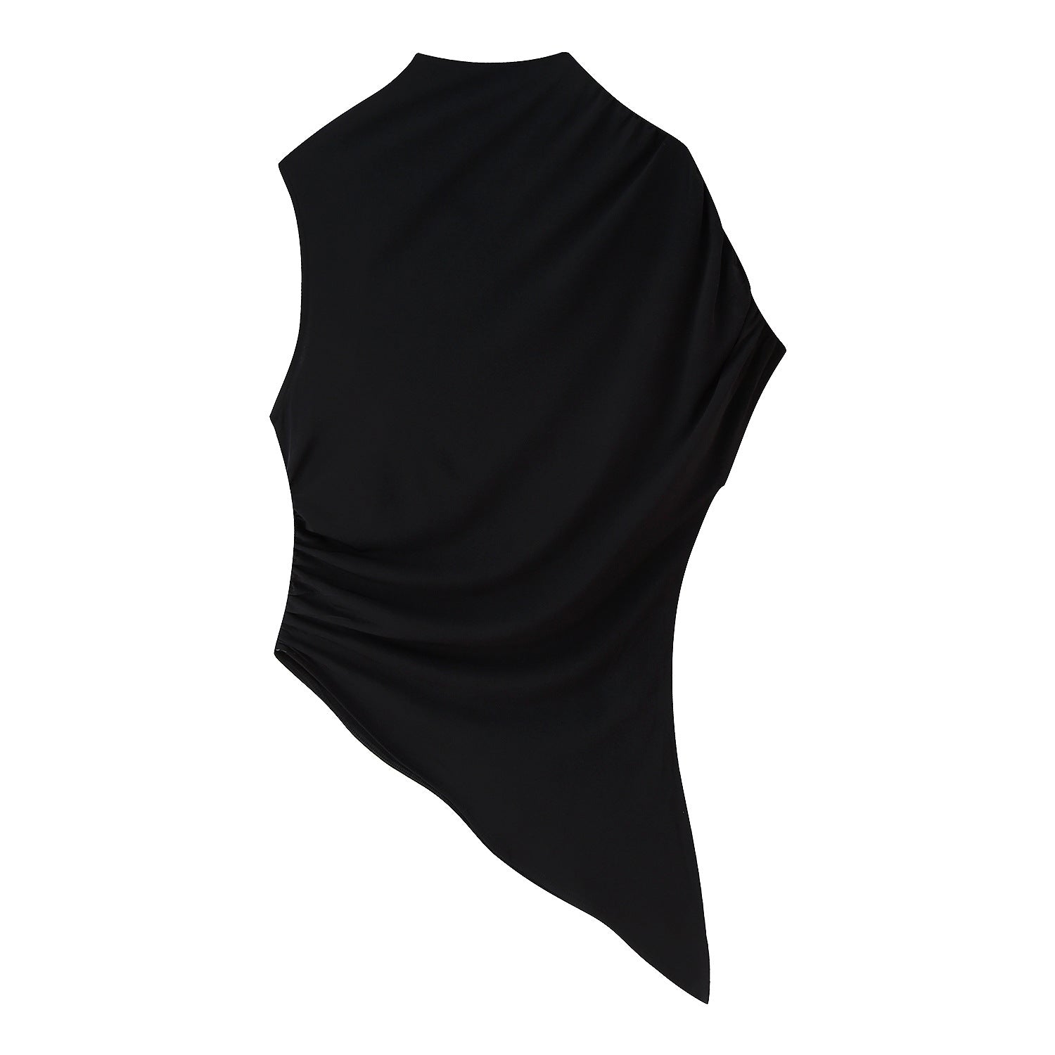 Med ett unikt asymmetriskt snitt och en mjuk vattenfallshalsring erbjuder denna topp ett kreativt och feminint utseende. Det flödande materialet ger en behaglig känsla mot huden och gör den idealisk för både vardag och fest.