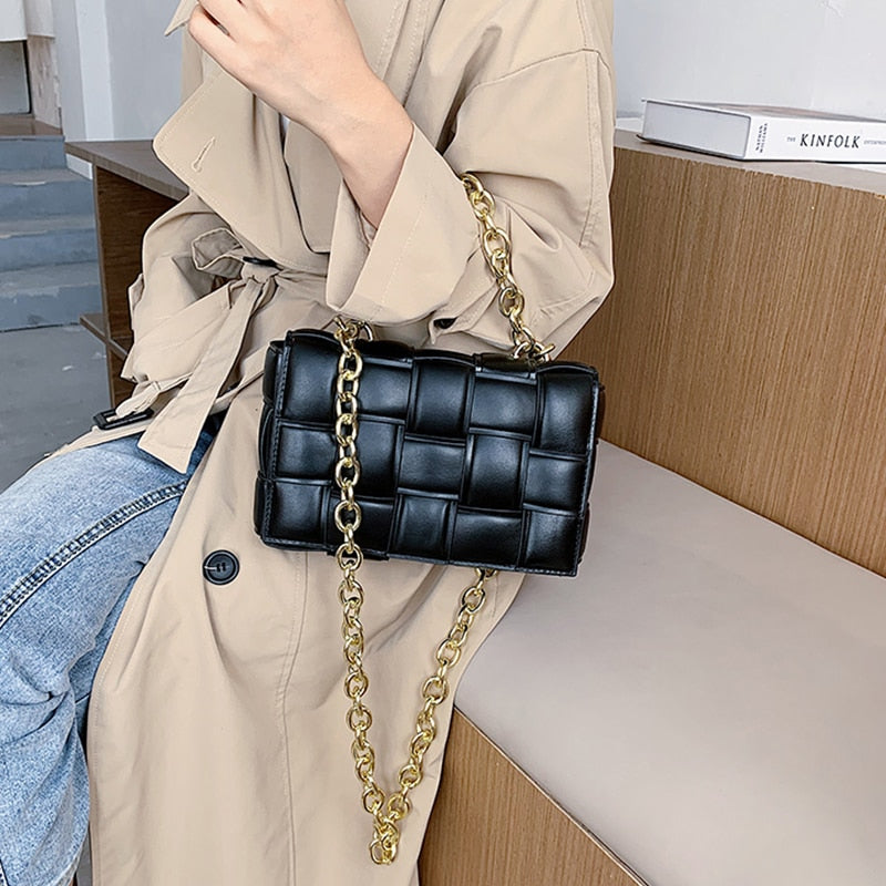 Väskan är tillverkad av kardad flätad PU och har en HASP-stängning som säkerställer att dina tillhörigheter är skyddade. Den är idealisk för både vardag och fest, vilket gör den till ett mångsidigt val för din garderob.