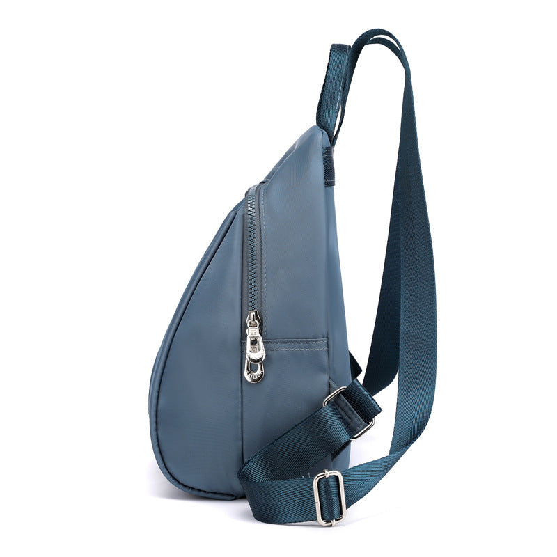 Med sina harmoniska färger och dubbla axelremmar erbjuder väskan både stil och komfort. Den mjuka nylonkonstruktionen ger en lätt känsla, medan de praktiska facken inuti gör det enkelt att organisera dina tillhörigheter.