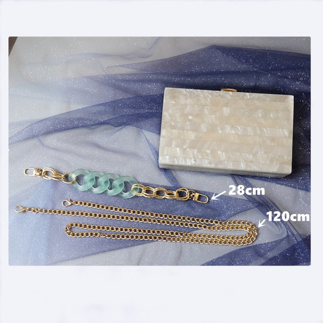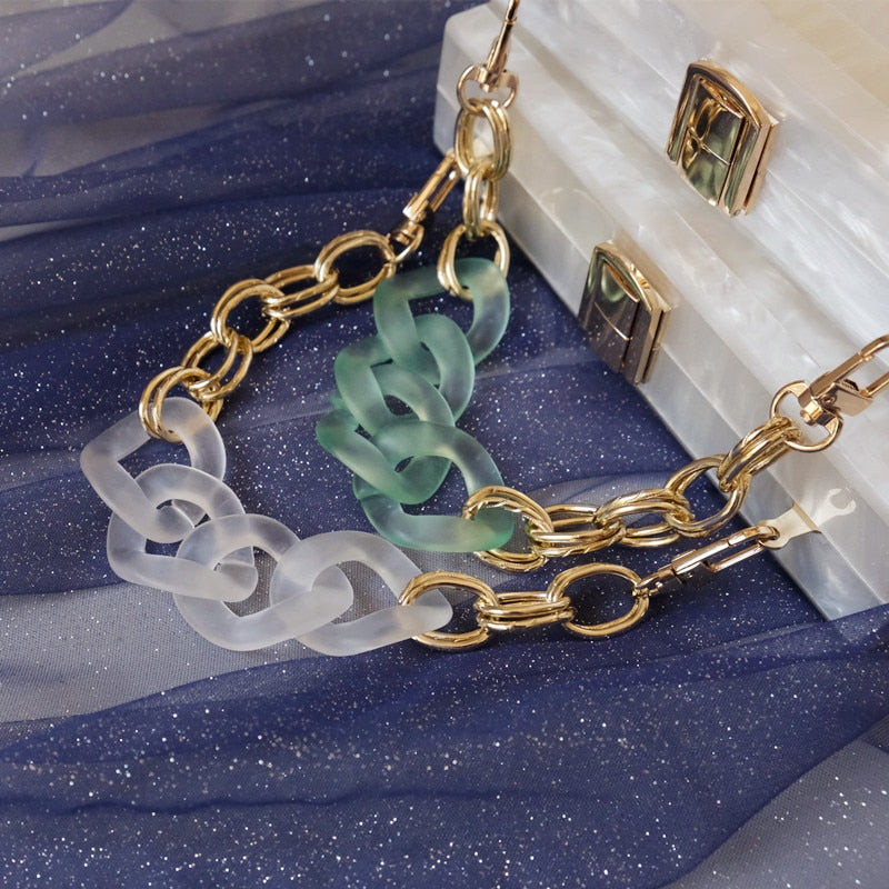 Väskan är tillverkad av hållbart PVC och akryl, vilket ger en modern och chic look. Den kan enkelt användas som en axelväska eller en handväska, vilket gör den mångsidig för olika tillfällen.