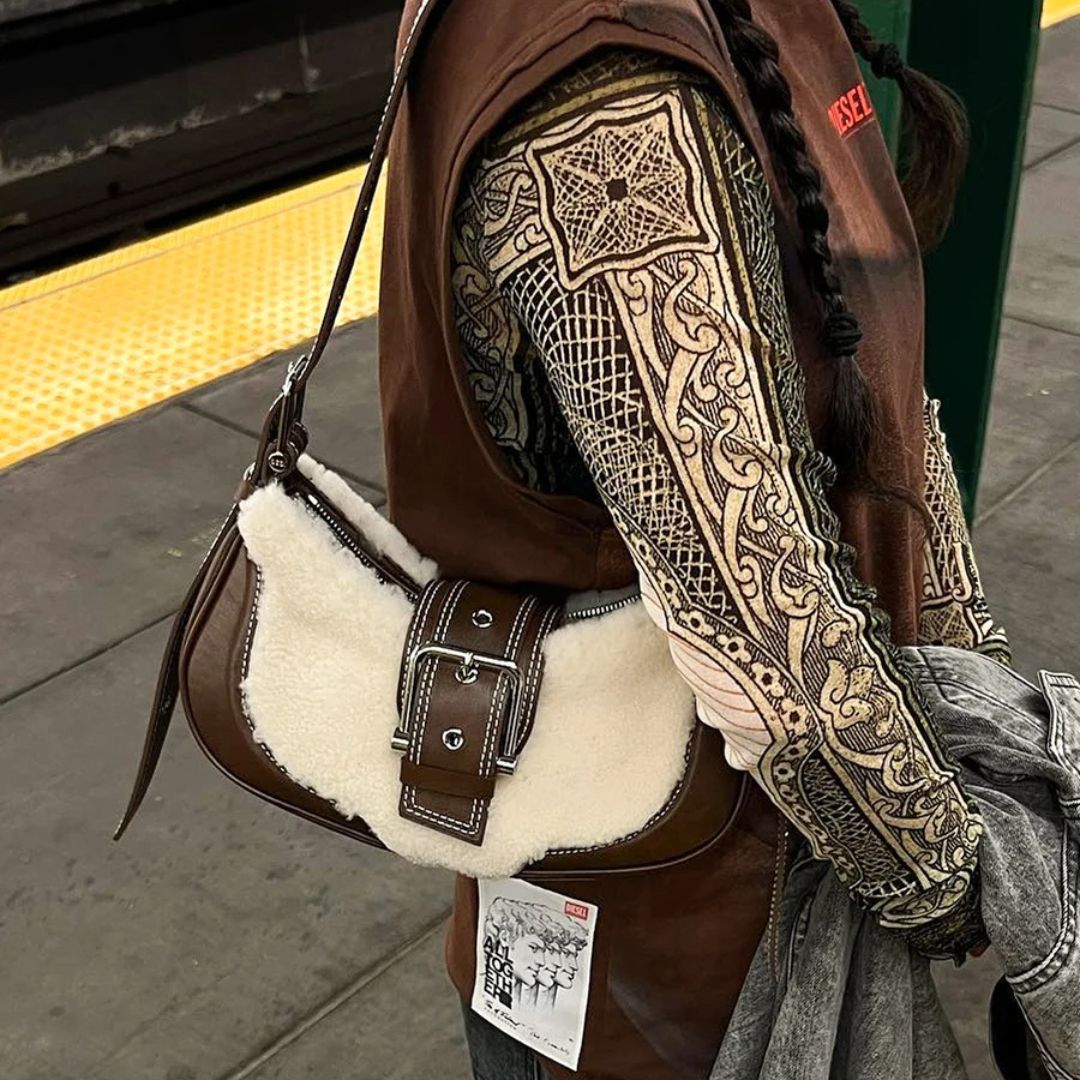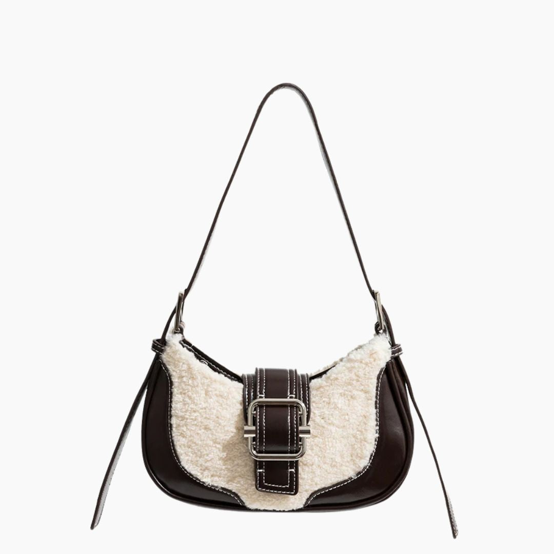Väskan är tillverkad av veganskt läder och mysig syntetisk päls, vilket gör den både hållbar och trendig. Den är idealisk för vardagligt bruk, shopping eller en kväll på stan, och passar utmärkt med olika outfits.