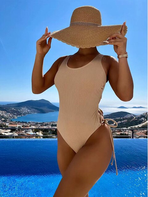 Denna baddräkt kombinerar en modern och feminin stil med hög komfort. Den rygglösa designen ger en vacker silhuett, perfekt för både soliga dagar vid poolen och strandfester.