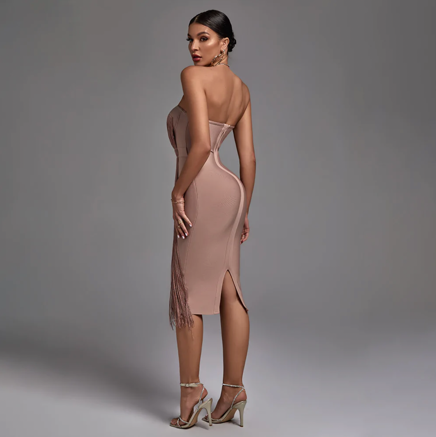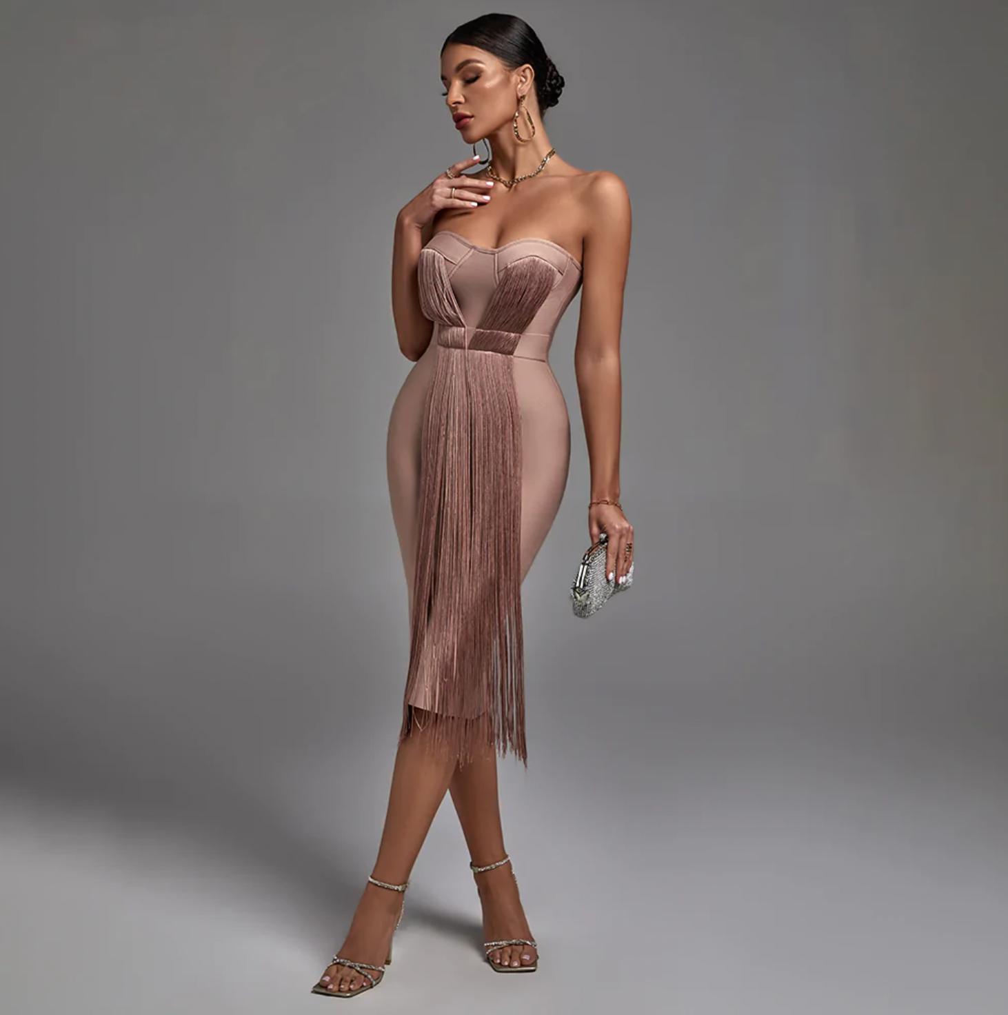 Dam Bandageklänning Snäv Elastisk med Fransar och Tofsar