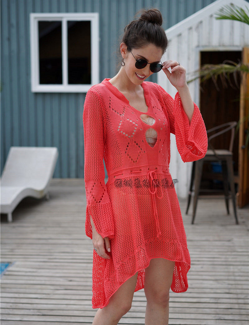 Dam Bikini Cover-up Ihålig Stickad 100% Akryl Lång Ärmar