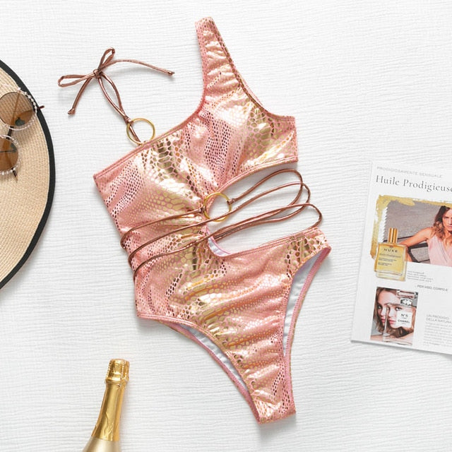Upplev en känsla av frihet och stil med denna unika bikini set. Den asymmetriska designen ger en modern touch som gör att du känner dig självsäker och vacker vid poolen eller på stranden.