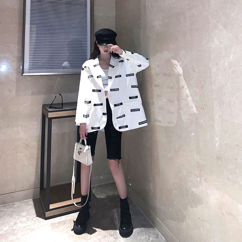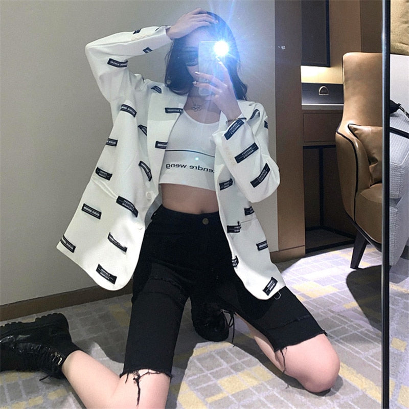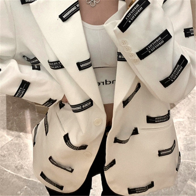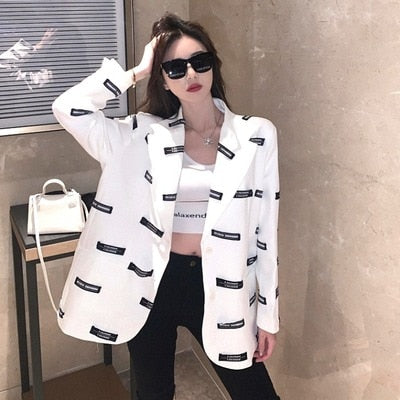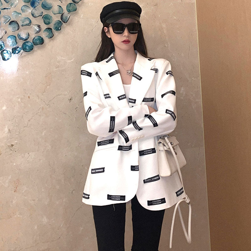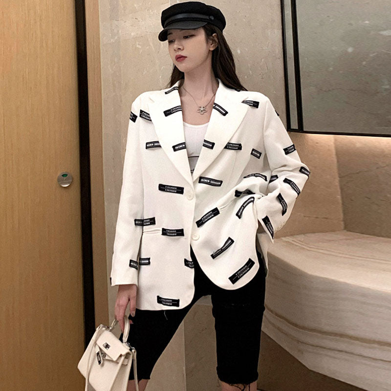 Dam Blazer Avslappnad Bomull Lång Ärmar Knappstängning