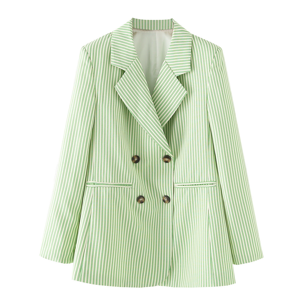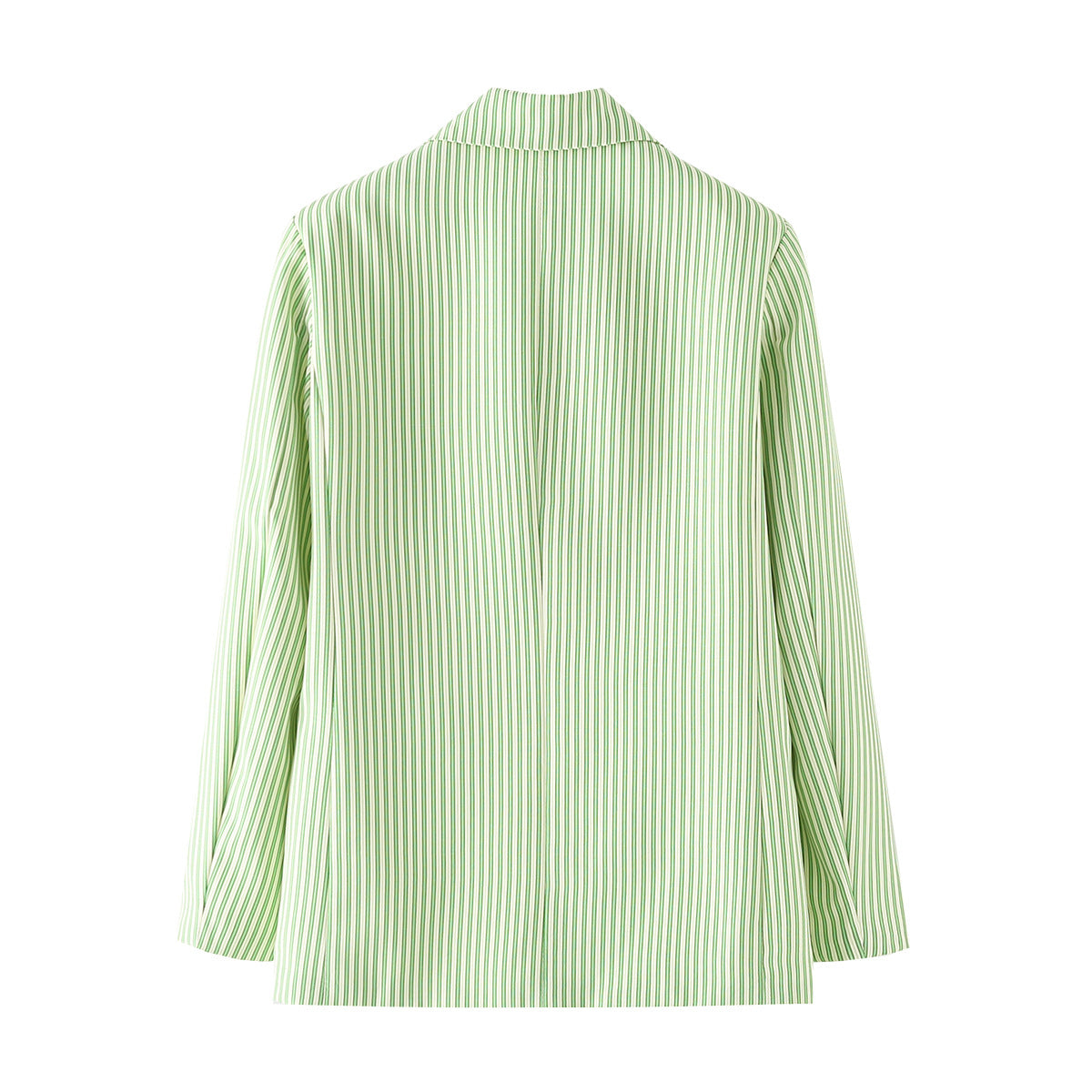 Denna eleganta blazer är perfekt för att ge din outfit en sofistikerad touch. Med sin slim fit-silhuett och ljusgröna randiga mönster kommer du att känna dig både stilfull och bekväm.