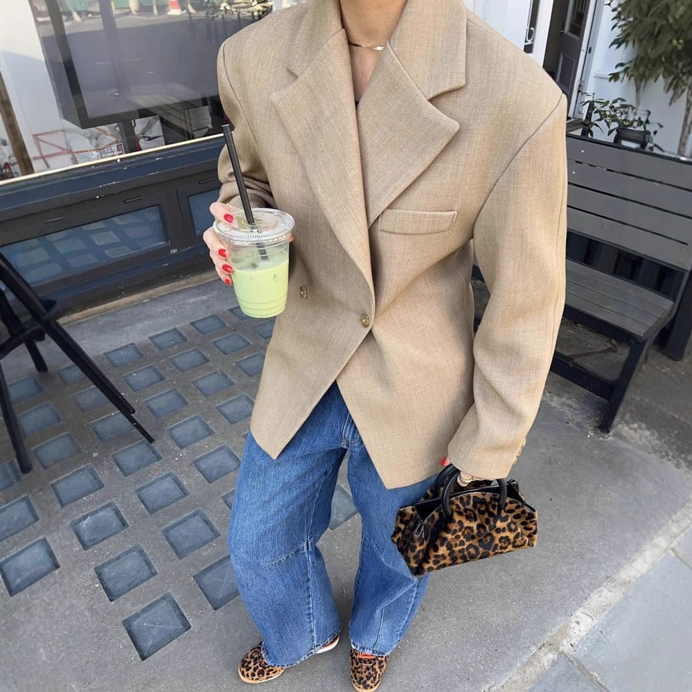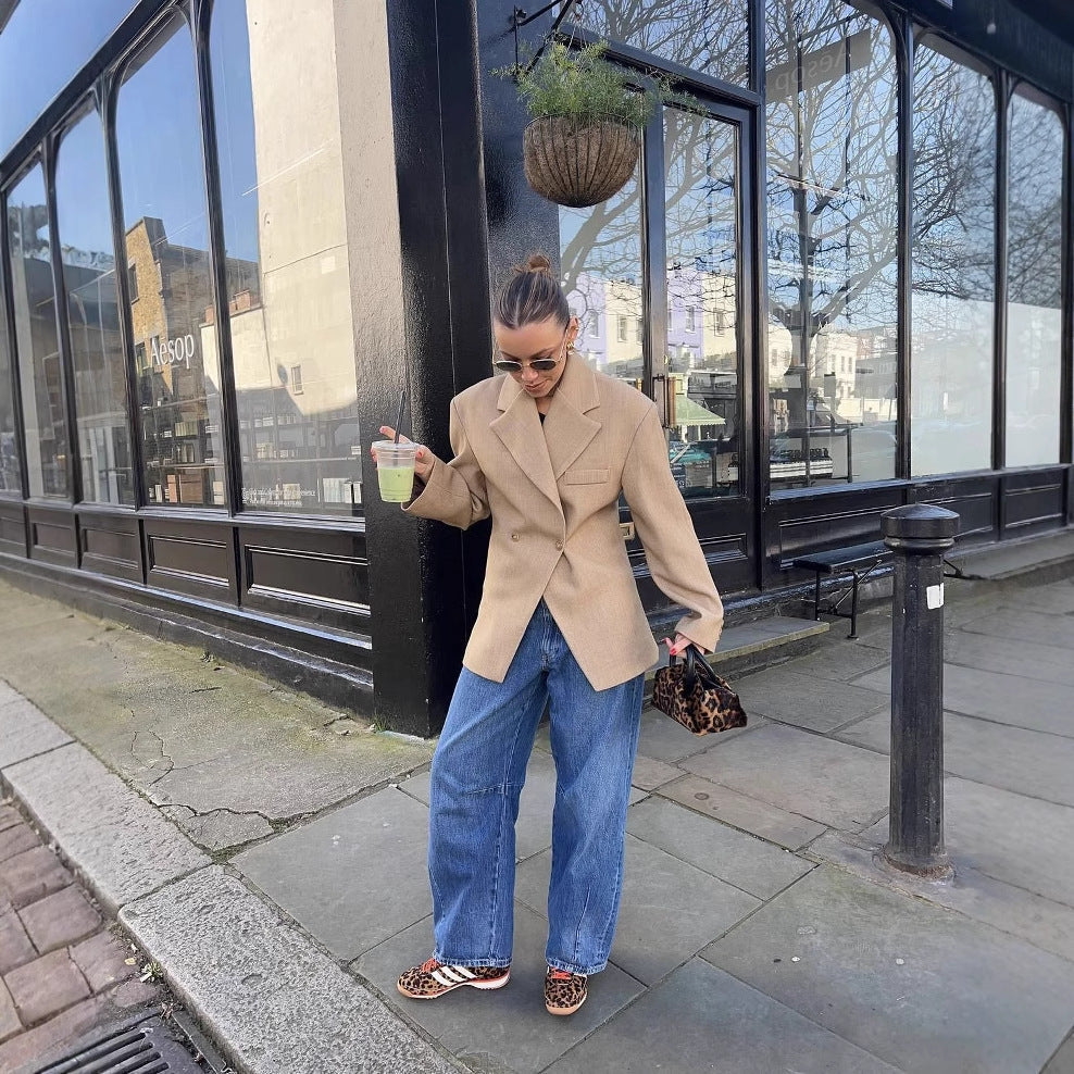 Dam Blazer Överdimensionerad Modern Stil Andningsbart Tyg
