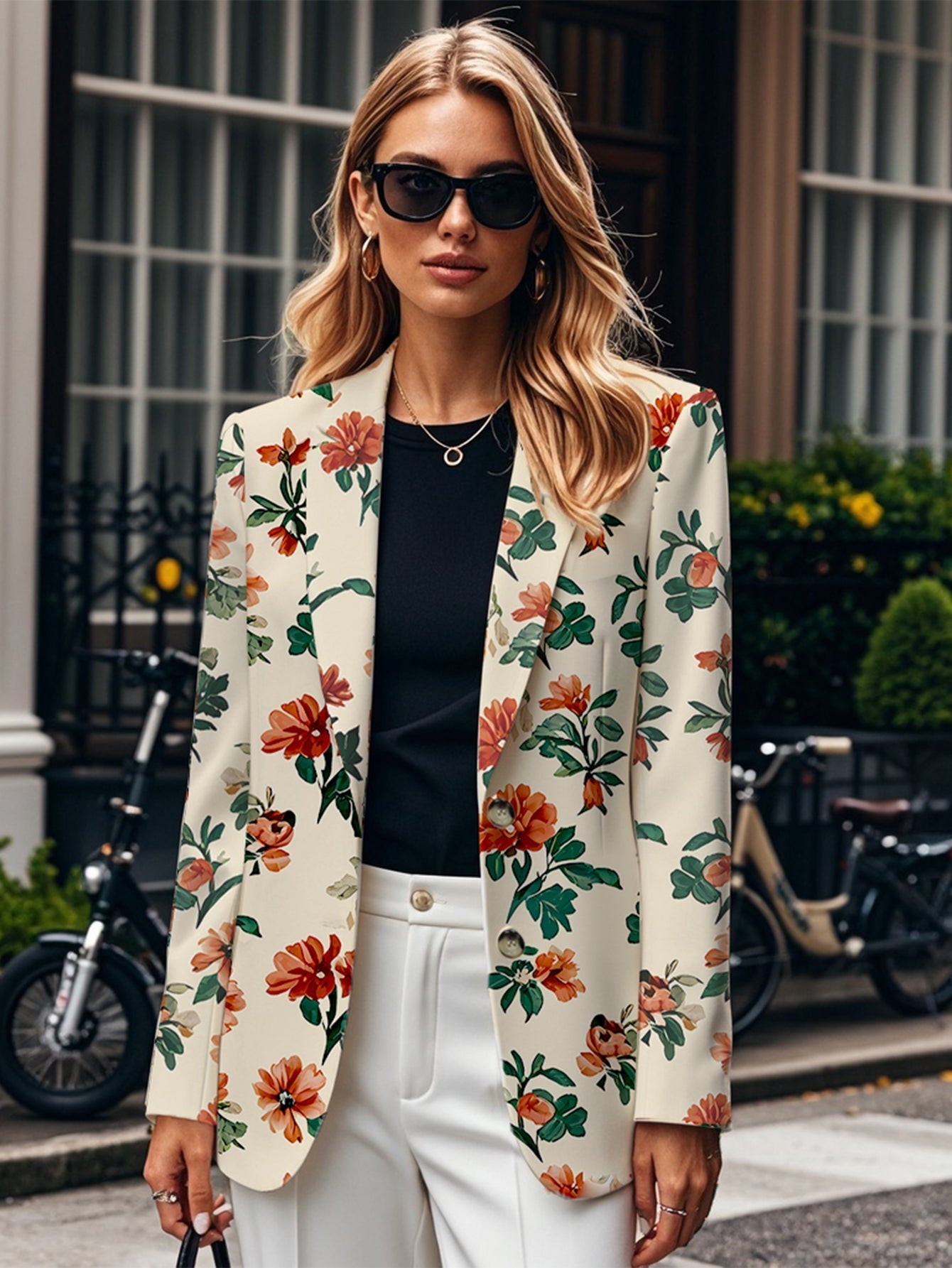 Denna blommiga kontorsblus i aprikos är perfekt för att ge en fräsch och stilren look på jobbet. Med sin bekväma passform och eleganta design kommer du att känna dig självsäker och vacker hela dagen.