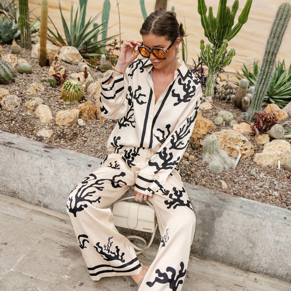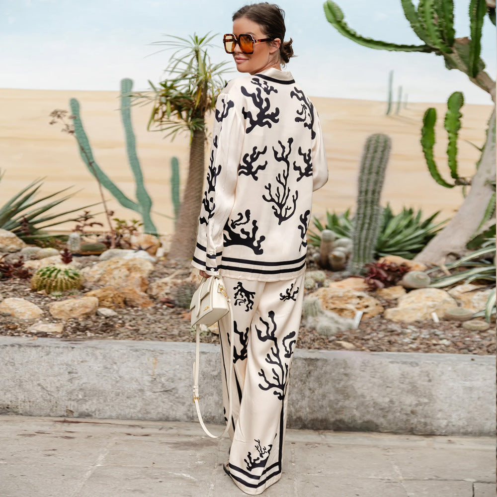 Långärmad Skjorta och Byxor för Dam med Blommönster