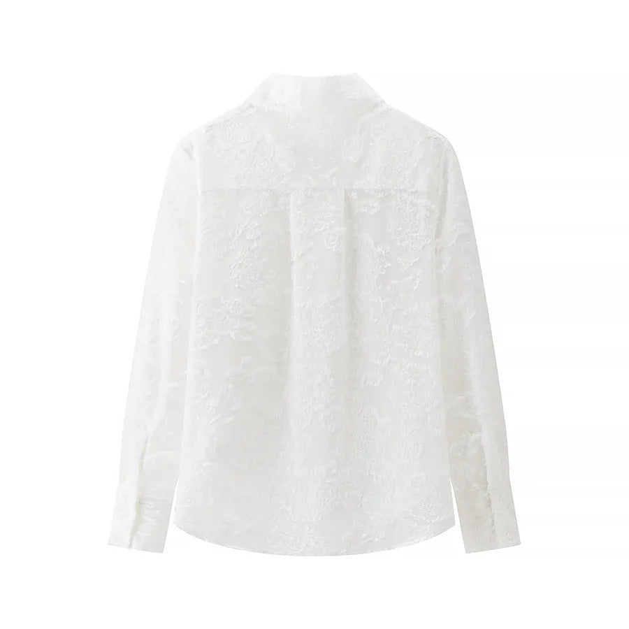 Blusen är designad med ett vackert blommönster som ger en romantisk känsla. Den moderna passformen och de klassiska knapparna skapar en feminin silhuett, vilket gör den idealisk för både kontoret och festliga tillfällen.