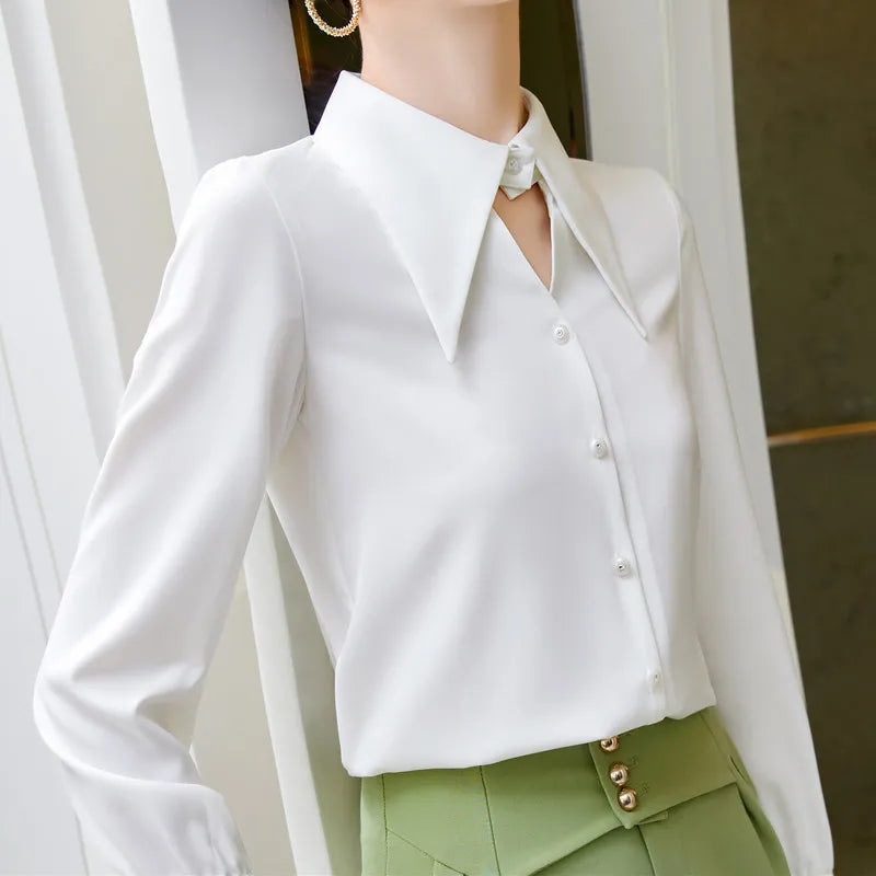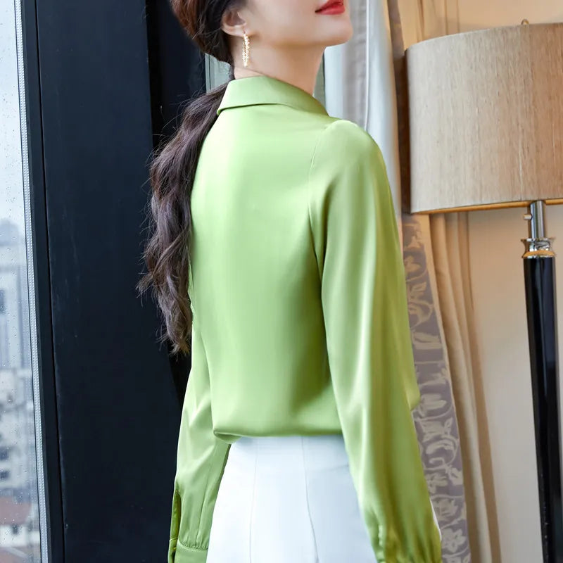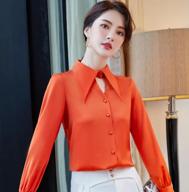 Denna blus har en tidlös design med en Peter Pan krage och är tillverkad av lätt polyester. Den mjuka och luftiga chiffongen ger en behaglig känsla mot huden, vilket gör den till ett utmärkt val för varma dagar.
