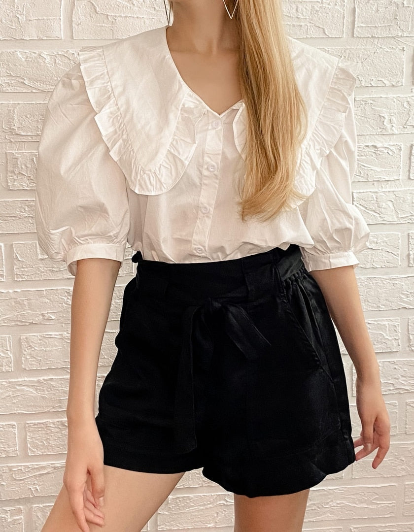 Denna blus är designad för den moderna kvinnan som värdesätter både funktion och mode. Med sin klassiska Peter Pan-krage och korta ärmar är den idealisk för alla säsonger, vilket gör den till en mångsidig del av din garderob.