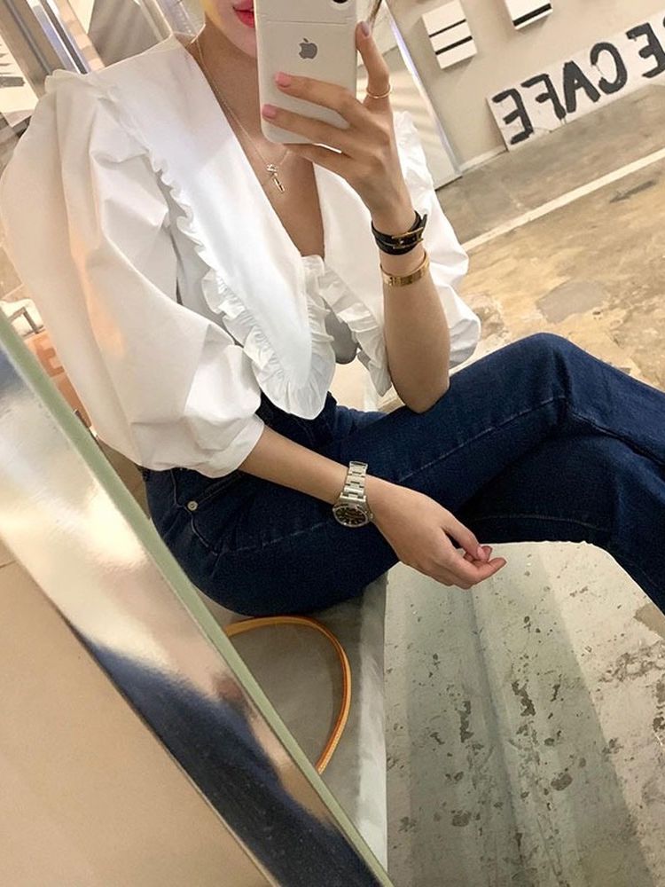 Upplev en tidlös elegans med denna blus som kombinerar stil och komfort. Perfekt för både arbete och fest, ger den dig ett tilltalande utseende oavsett tillfälle.