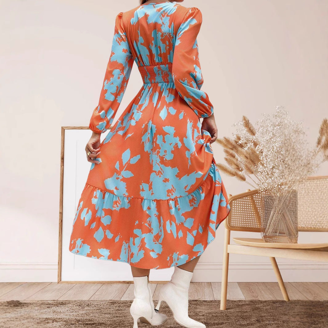 Blusen har ett unikt tryckt mönster och volangdetaljer som ger en feminin touch. Den är tillverkad av polyester, vilket gör den lätt och luftig, perfekt för olika tillfällen.