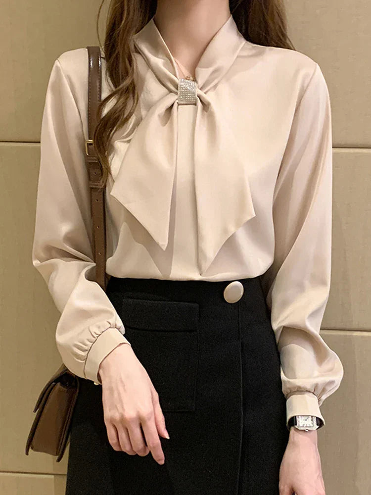 Dam Blus med Diamantdesign Lång Ärmar Polyester Acetat