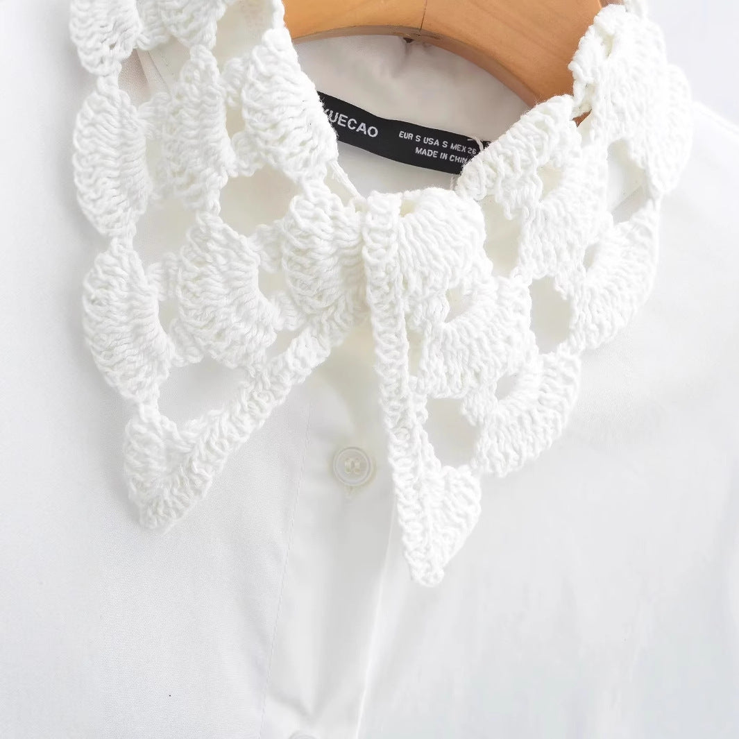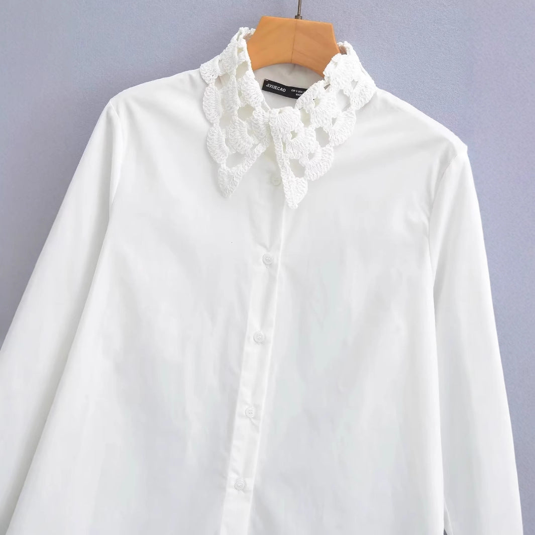 Kvinnors Blus med Spetsdetaljer och Modern Krage