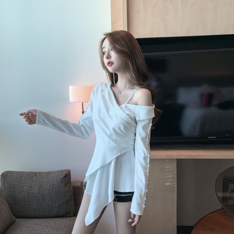 Denna blus är en perfekt kombination av stil och komfort, vilket gör att du kan känna dig självsäker och elegant oavsett tillfälle. Med sin unika design och färgglada pärldetaljer kommer den att bli en favorit i din garderob.