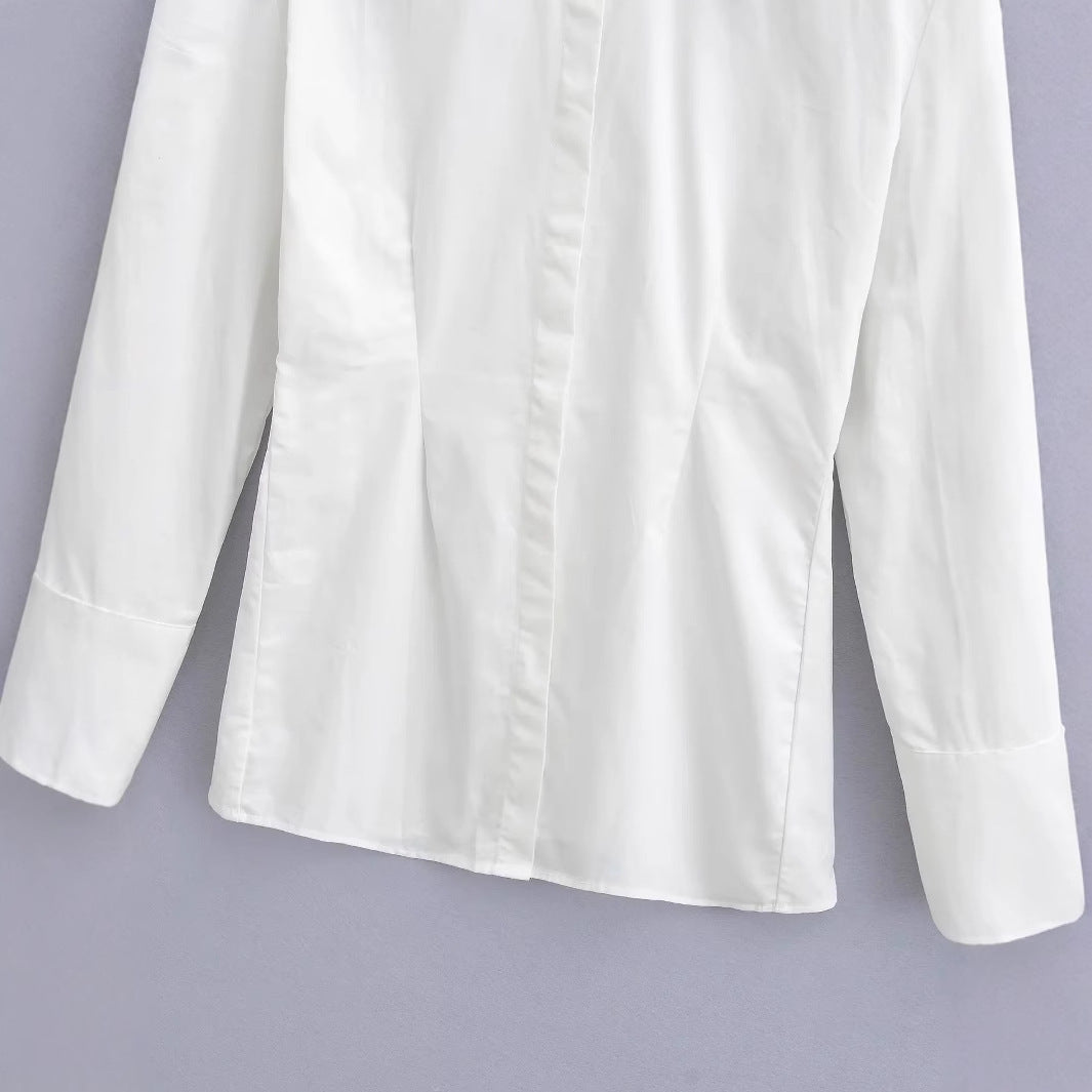 Dam Blus Modern Snitt Bomull med Klassisk Krage