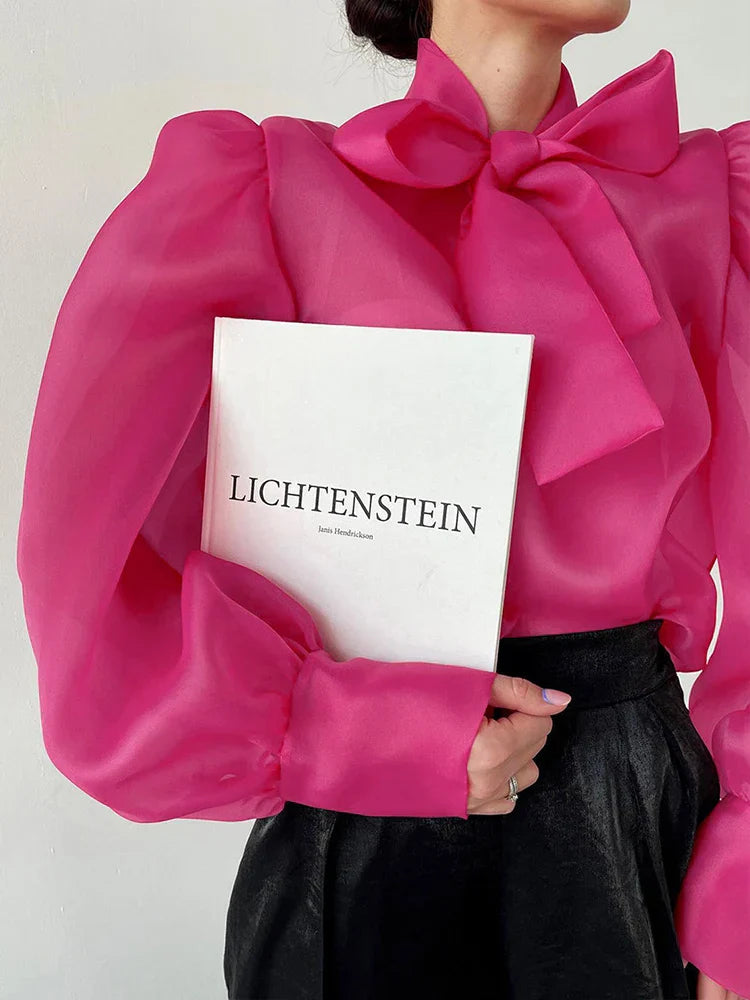 Dam Blus Monokrom Lätt Stretchig Polyester med Puffärmar