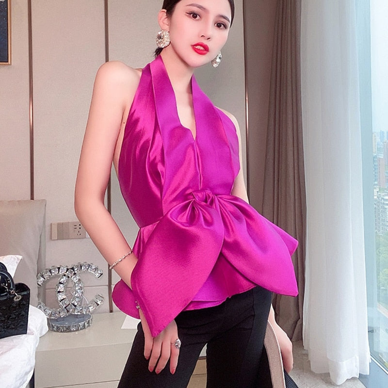 Denna blus har en unik design med en rygglös stil och vackra slipningsstjärnor som ger en modern touch. Med ett blixtlås i ryggen är den både praktisk och stilren, vilket gör den till ett utmärkt val för olika tillfällen.