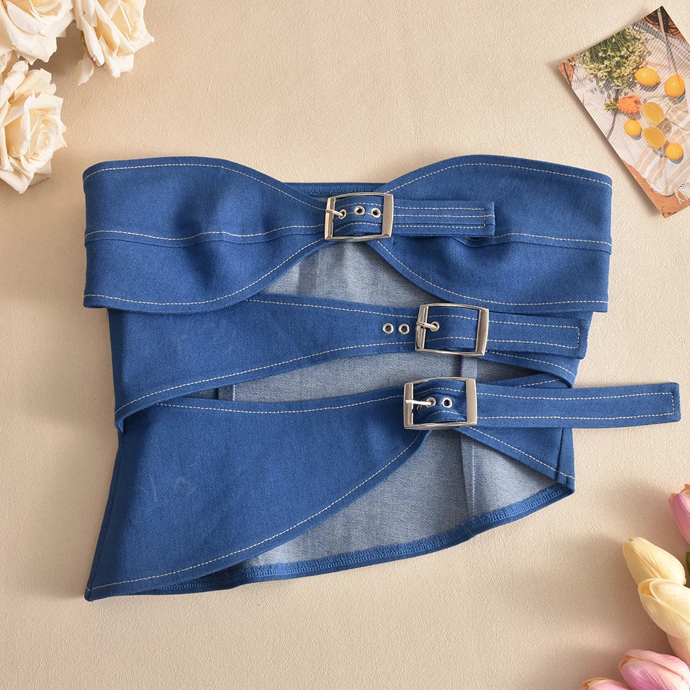 Fullända din sommarlook med vår stiliga body crop top! Denna topp är tillverkad av mjukt denimtyg och framhäver din silhuett på ett elegant sätt.