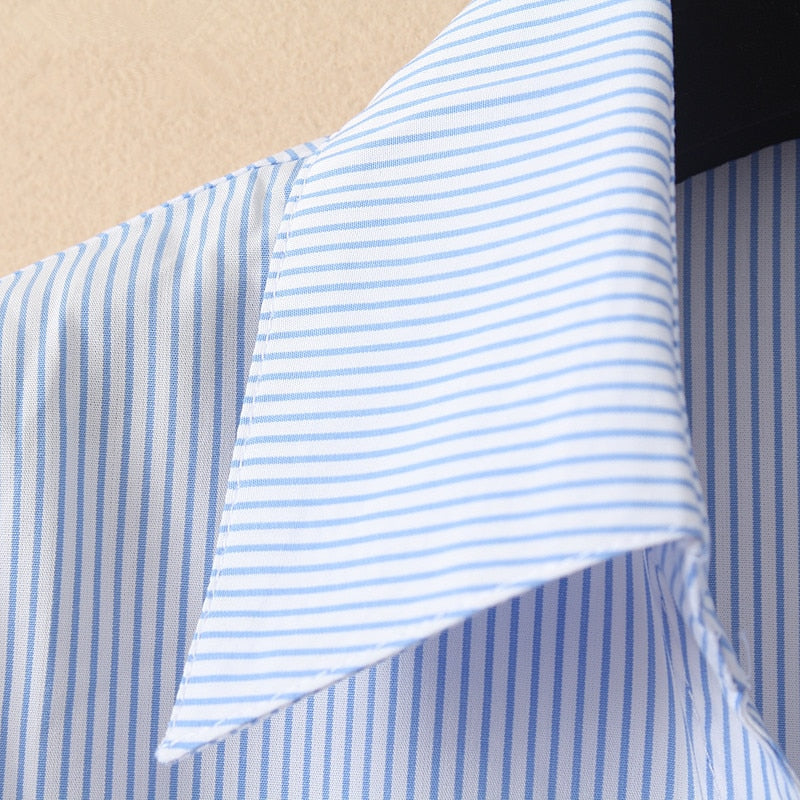 Detta plagg har ett tidlöst randigt mönster och ett löst snitt som gör den idealisk för både avslappnade och mer formella sammanhang. De långa ärmarna ger extra värme och gör att du kan styla den på olika sätt.