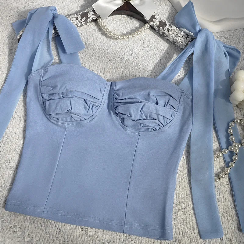 Denna bustier är tillverkad av en kombination av polyester och spandex, vilket ger en bekväm och elastisk känsla. Den feminina loop-applikationen ger en unik detalj som gör att den sticker ut, perfekt för både vardag och fest.