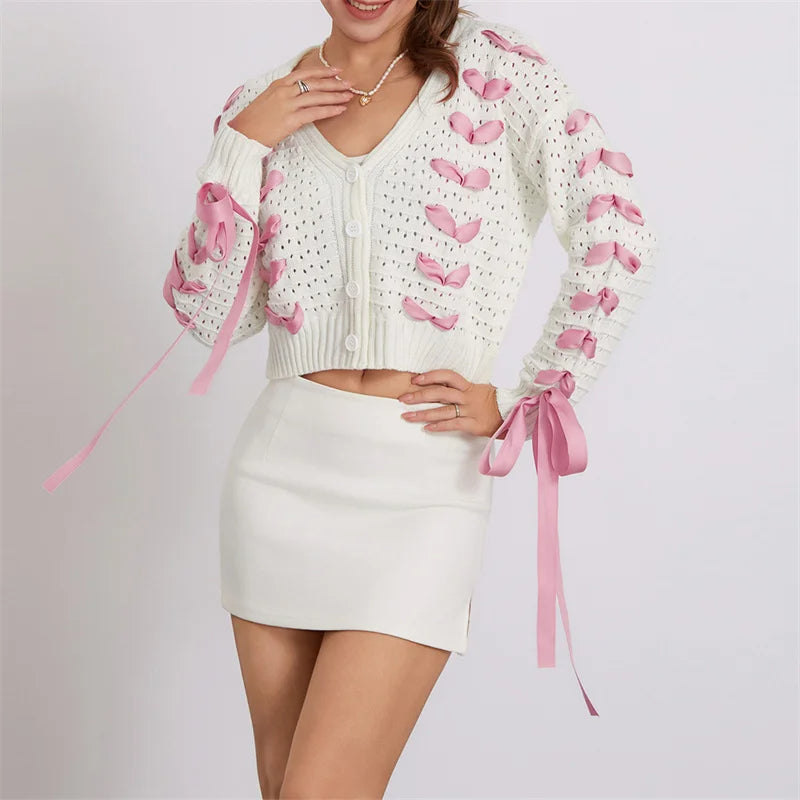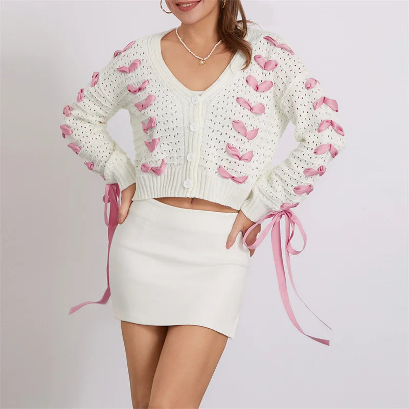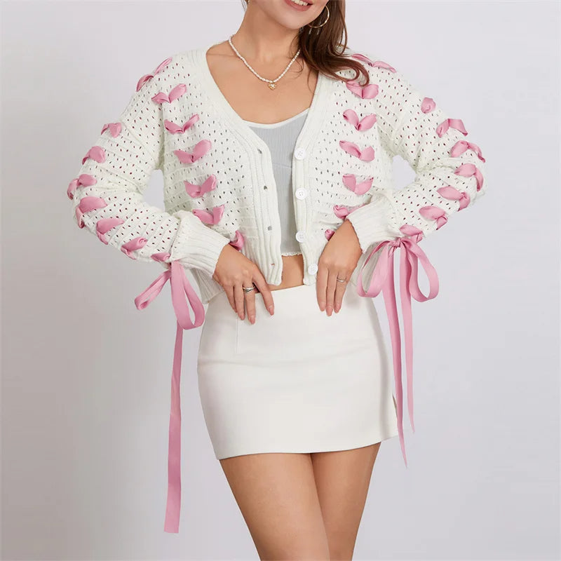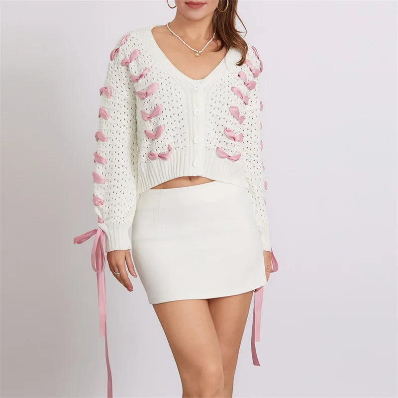 Dam Cardigan V-ringning med Knytdetaljer i 100% Akryl