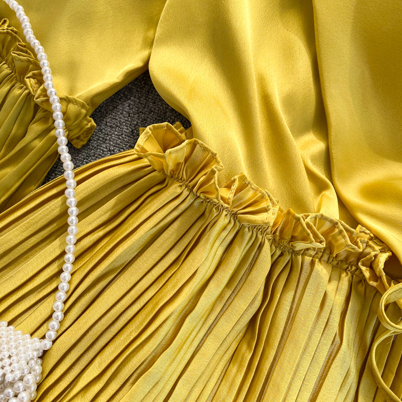 Dam Chiffongblus med Ruffle V-hals Lång Ärmar