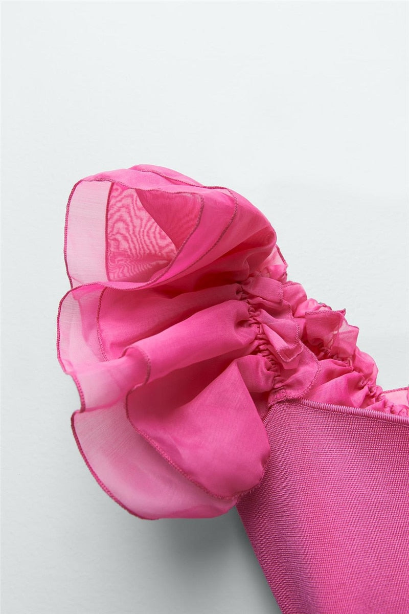 Upplev en perfekt kombination av stil och funktionalitet med denna crop top. Den ärmlösa designen och de lekfulla rufsade elementen gör att du känner dig både bekväm och trendig.