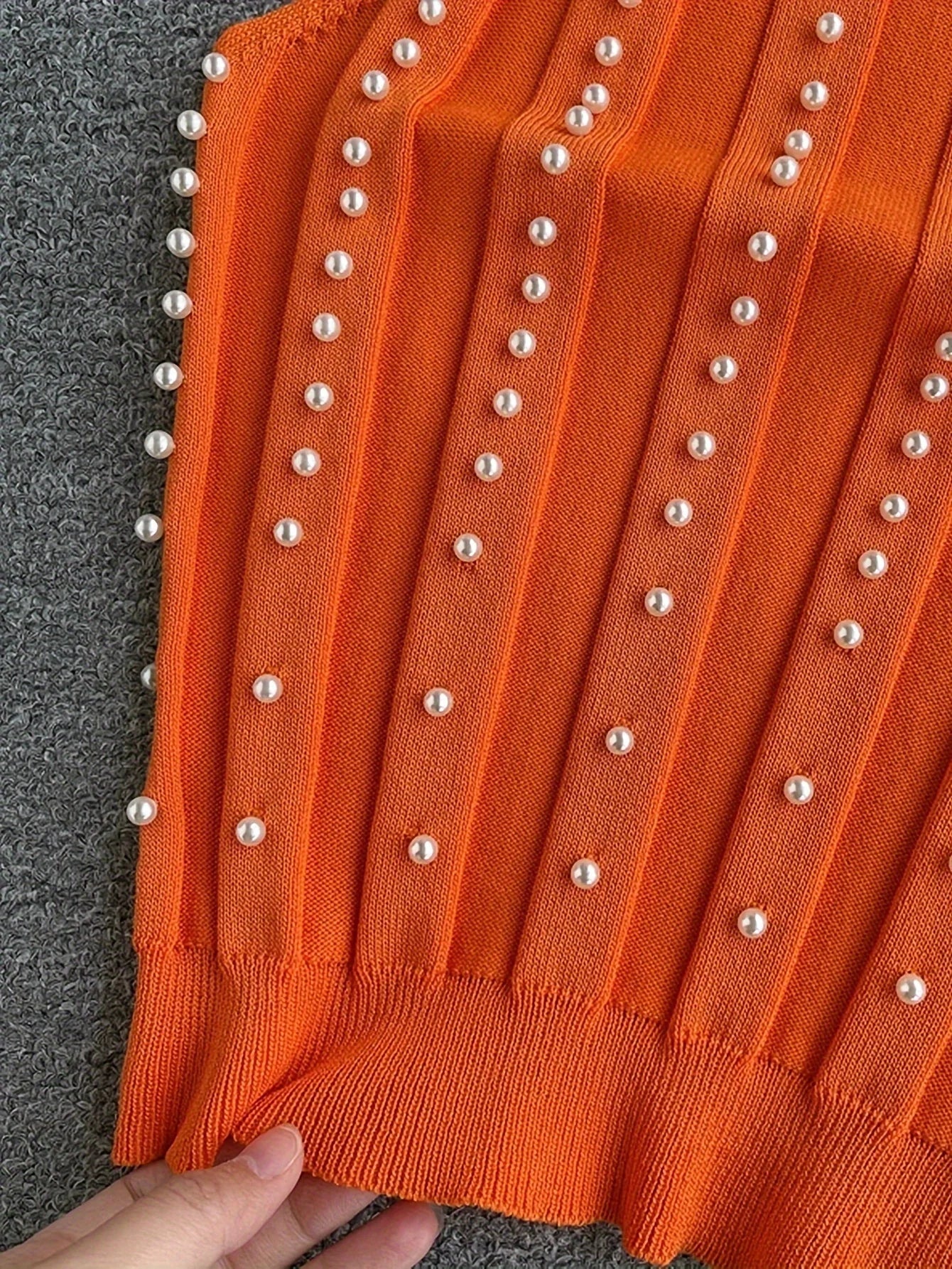 Denna topp med pärlor ger en känsla av stil och elegans. Perfekt att bära vid speciella tillfällen eller för att lyfta din vardagslook.