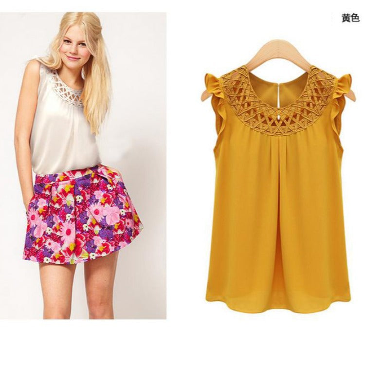 Dam Festtopp Med Utskärningar Polyester Löst Passform