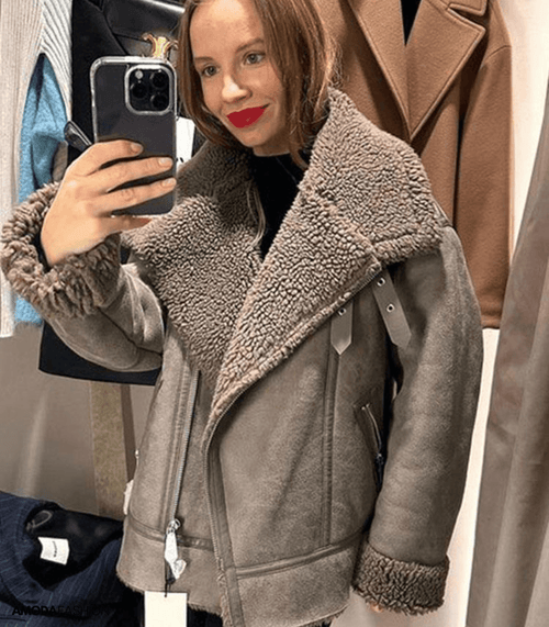 Fleece Läderjacka för Dam - Trendig Vinterstil