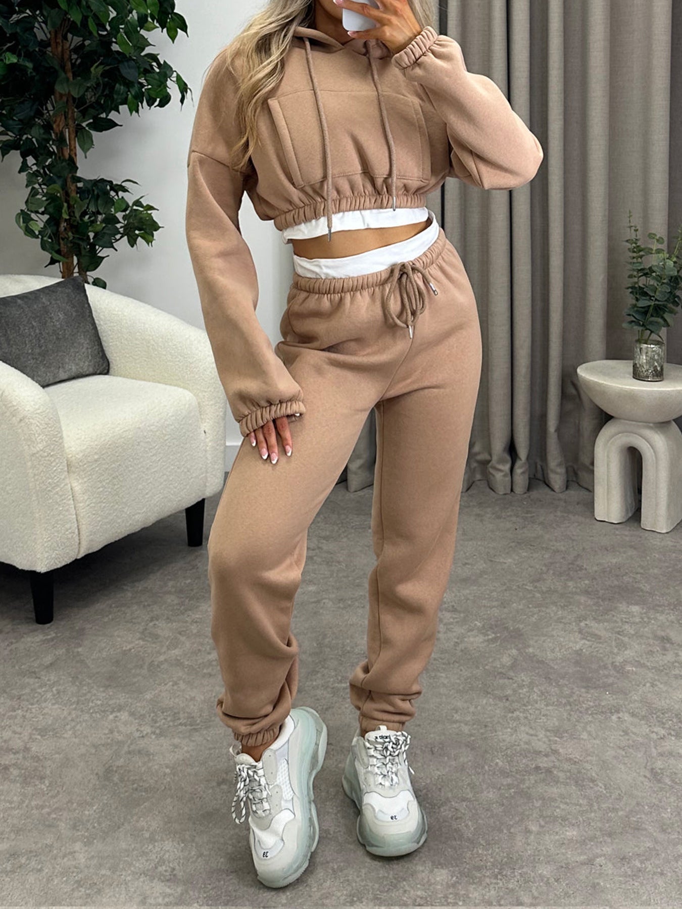 Fritidsdräkt för kvinnor med färgblockerad hoodie