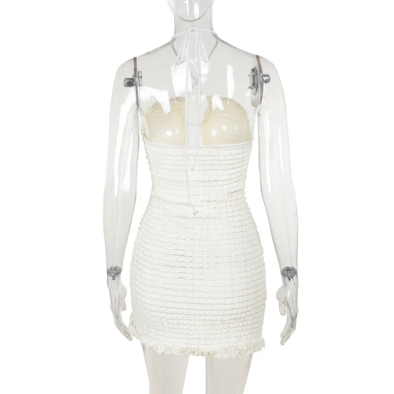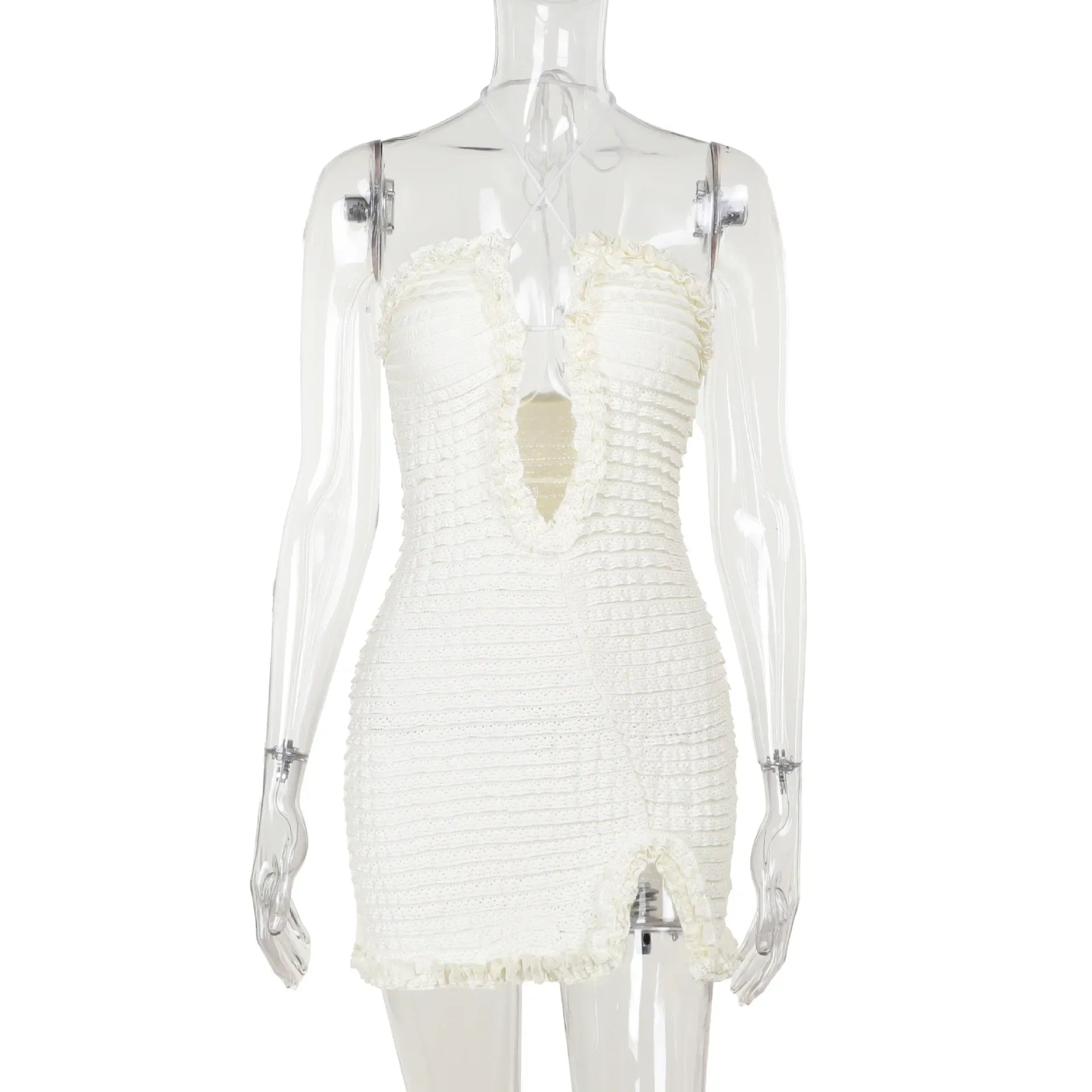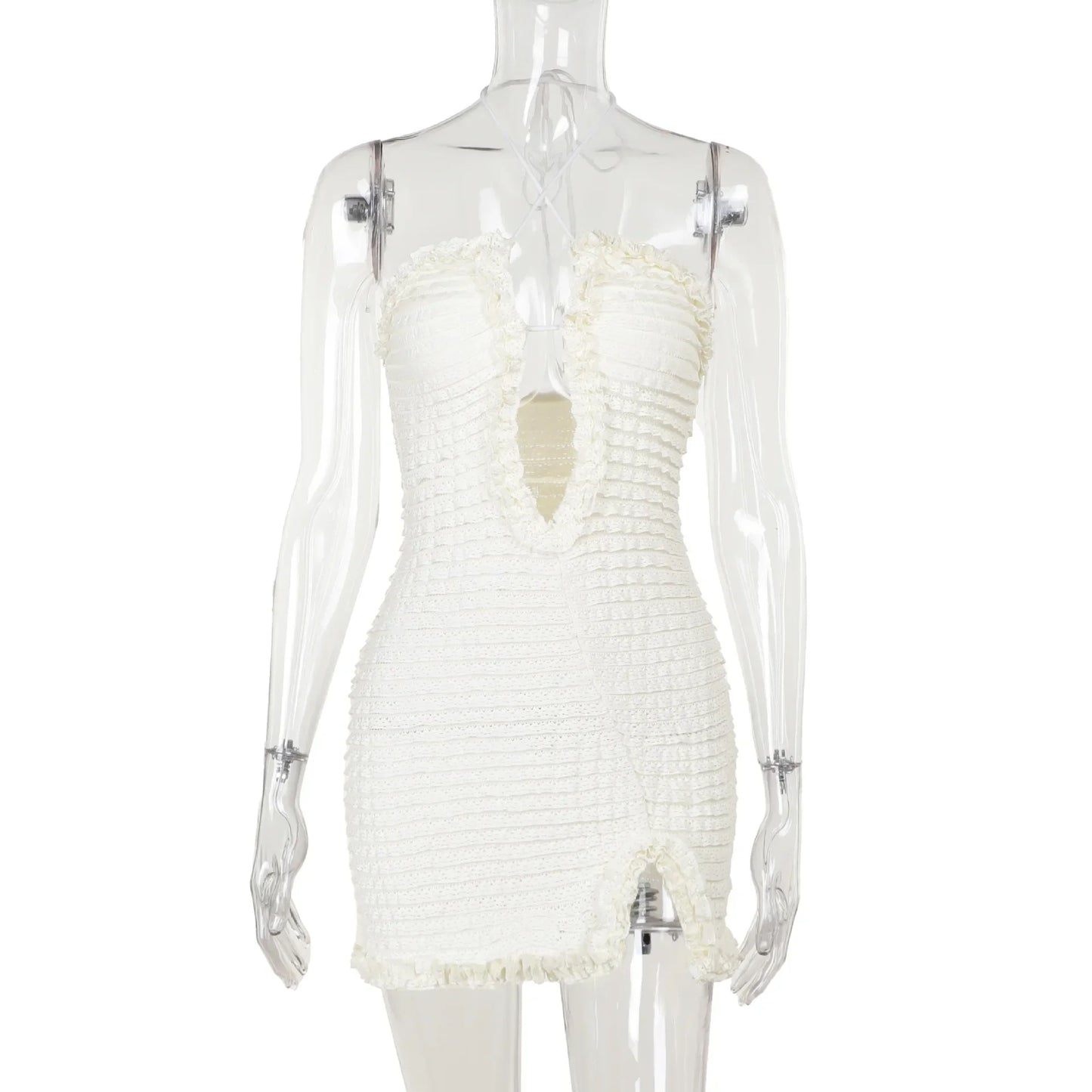 Upplev en känsla av självsäkerhet och stil med vår miniklänning. Den figurnära passformen och det eleganta designen gör att du kommer att känna dig fantastisk under hela kvällen.