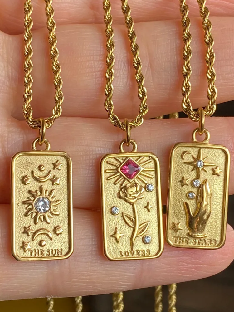 Dam Halsband Tarotkort Sol Guld Elegant Smycke