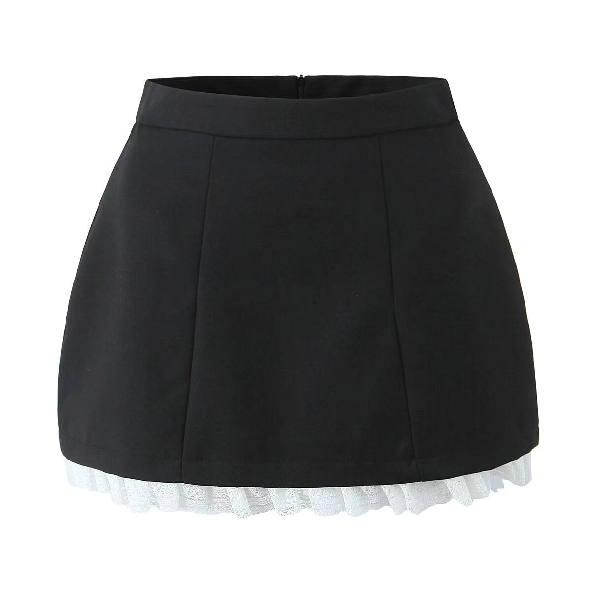 Kjolen har en unik design med två-ton spetstrim som ger en modern touch. Den är idealisk för streetwear och kan enkelt kombineras med olika toppar för att skapa en personlig stil.