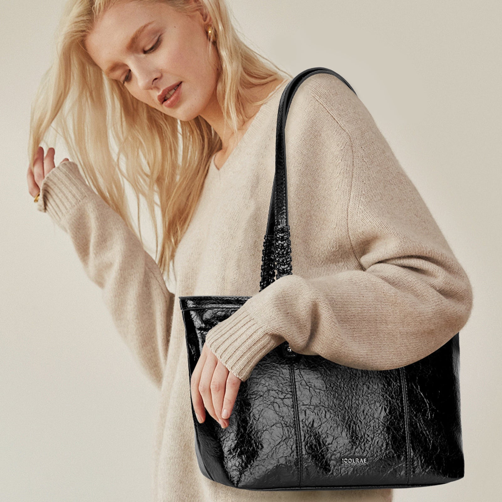 Denna rymliga hinkväska är den perfekta följeslagaren för hektiska dagar, där funktionalitet möter stil. Med sin generösa kapacitet kan du enkelt bära med dig allt du behöver, oavsett om du är på väg till kontoret eller på shoppingtur.
