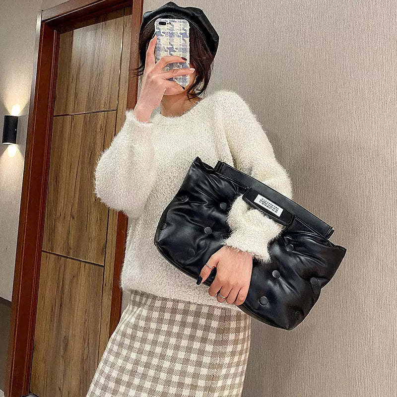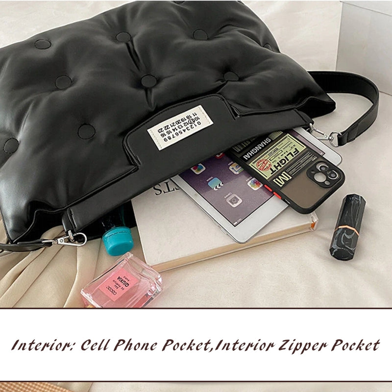 Dam Handväska Vadderad PU-Läder Rymlig För Arbete och Fritid