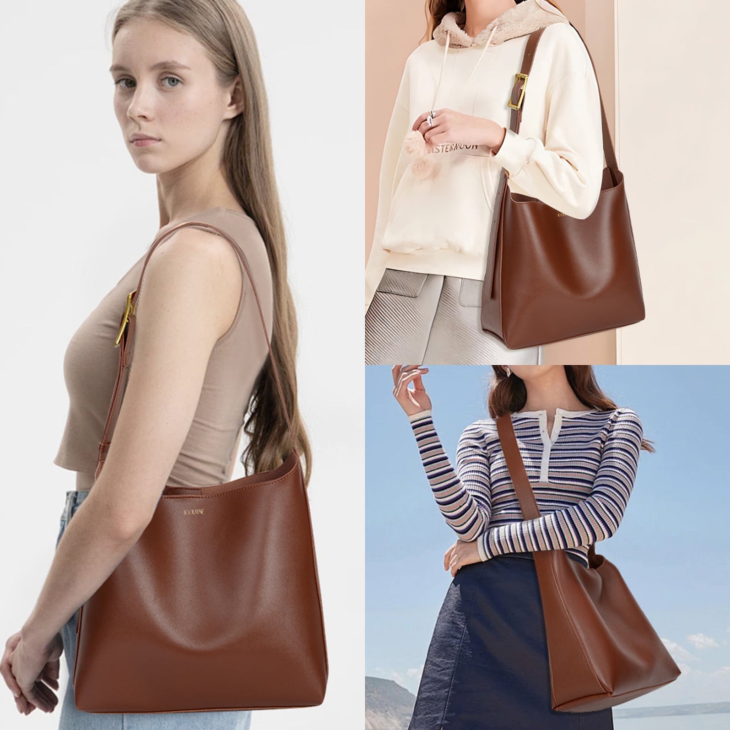 Denna hinkväska kombinerar stil och funktionalitet på ett perfekt sätt. Med sin mjuka känsla och eleganta design är den idealisk för den moderna kvinnan som alltid är på språng.