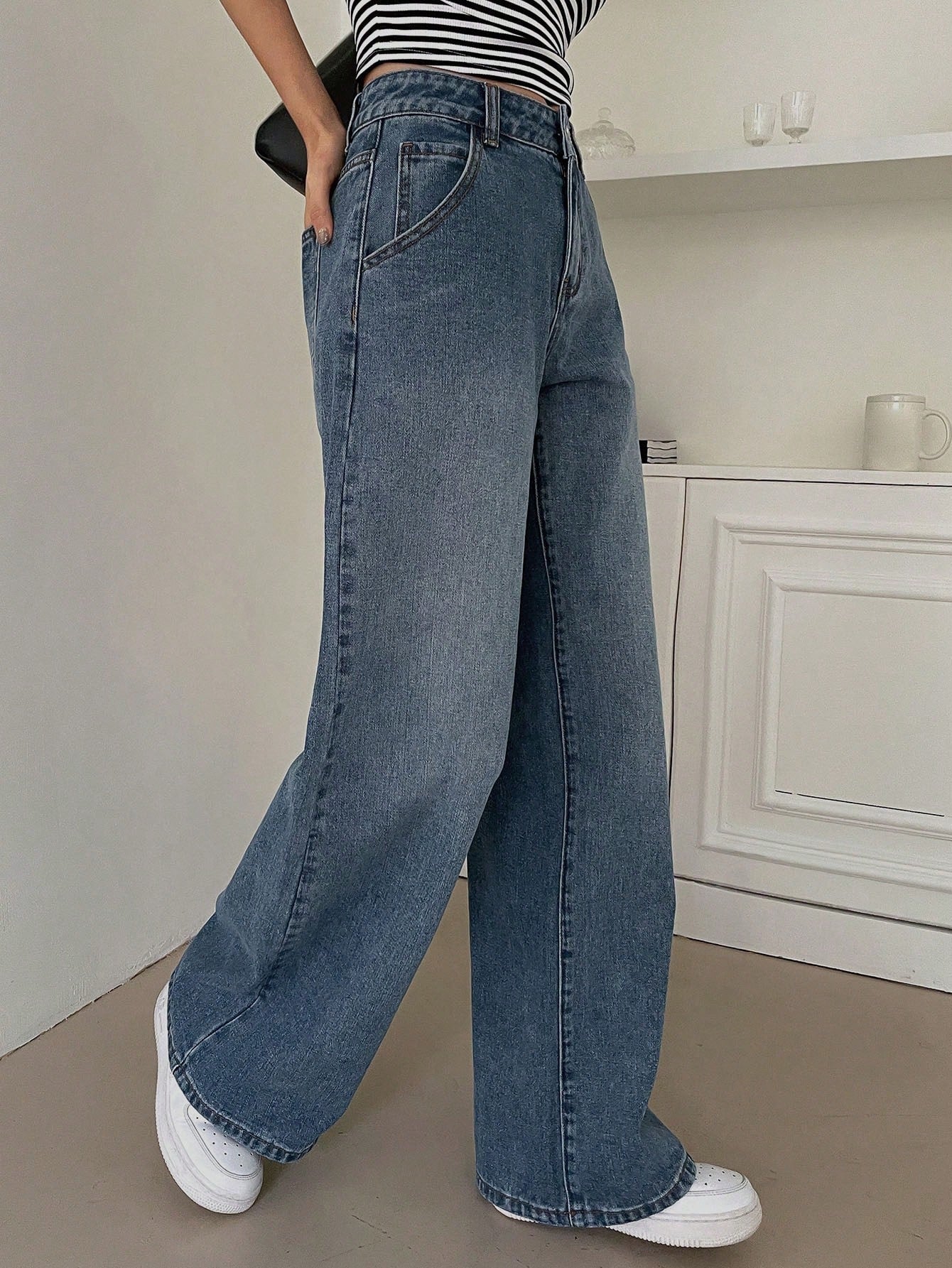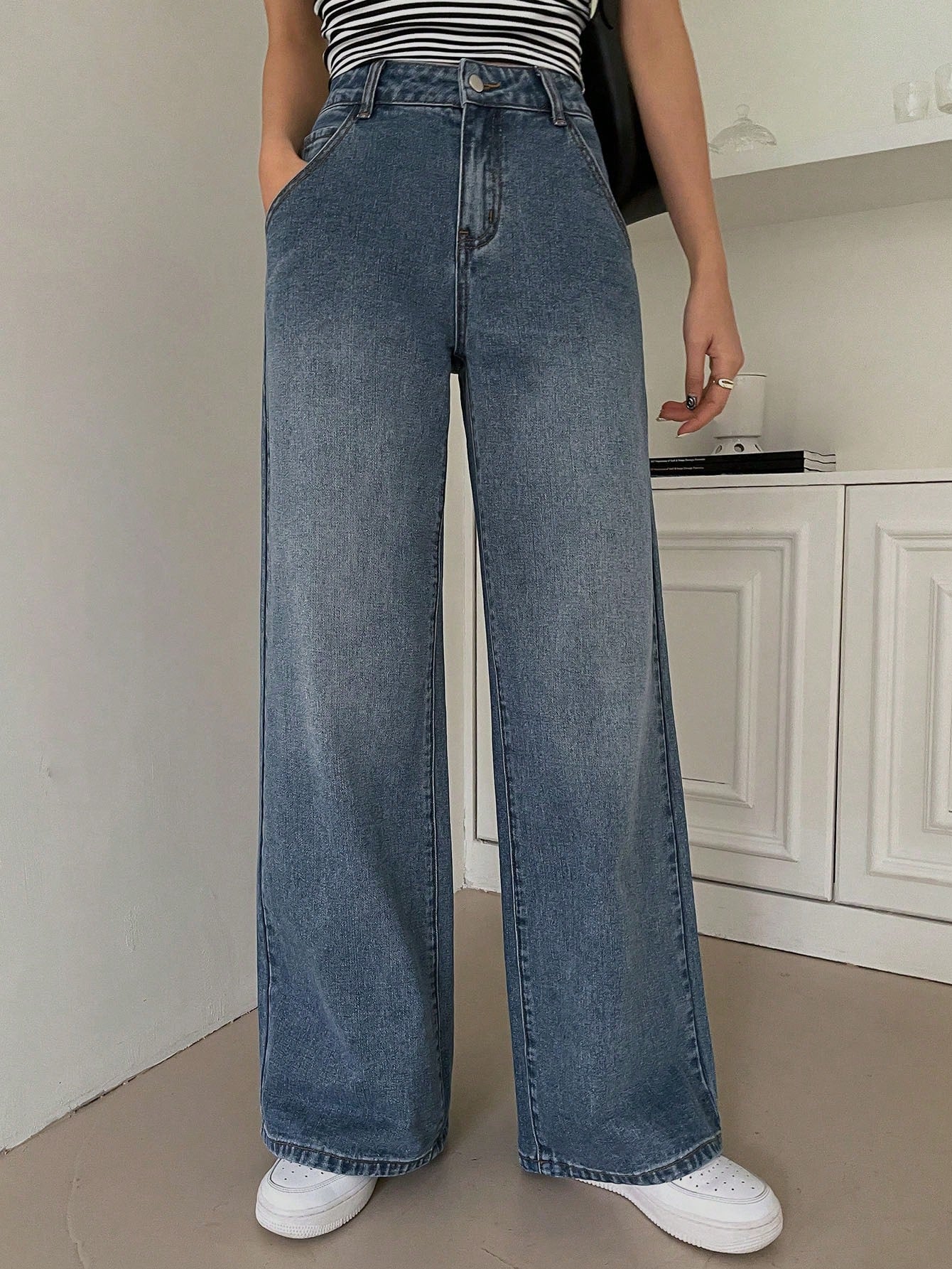 Bredbenade Jeans för Dam med Hög Midja