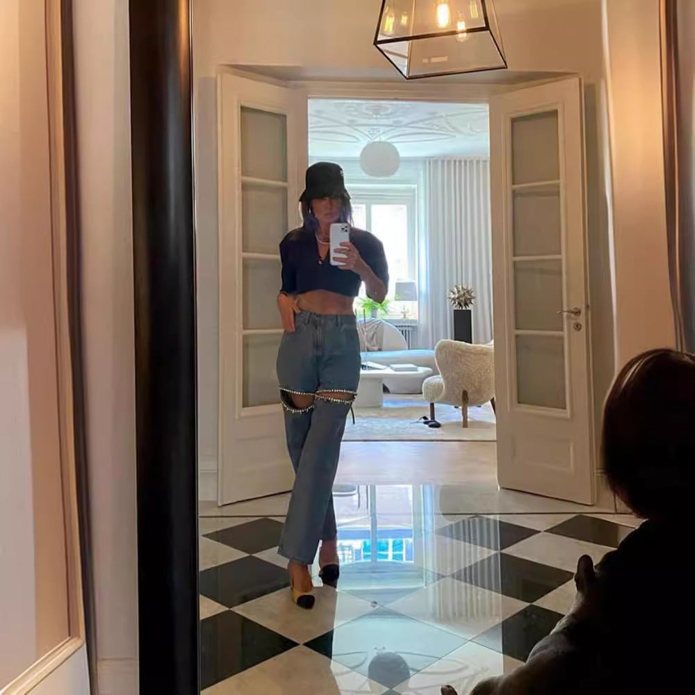 Med en modern design och trendiga detaljer, är dessa jeans idealiska för både vardag och fest. Det raka snittet ger en smickrande silhuett, medan de stiliga hålen tillför en ungdomlig och fräsch touch.