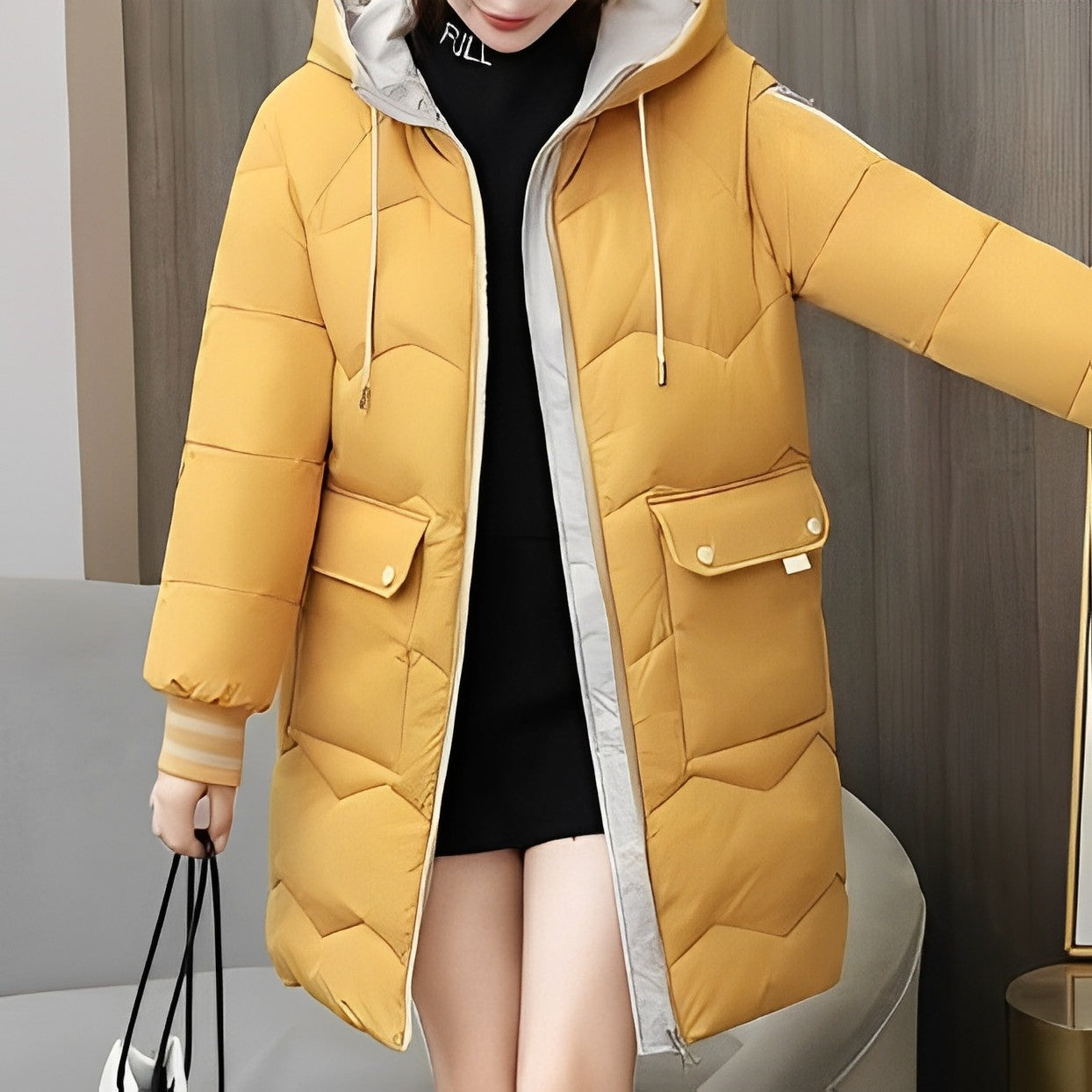 Dam Kappa Lång Vadderad Polyester för Kalla Vinterdagar