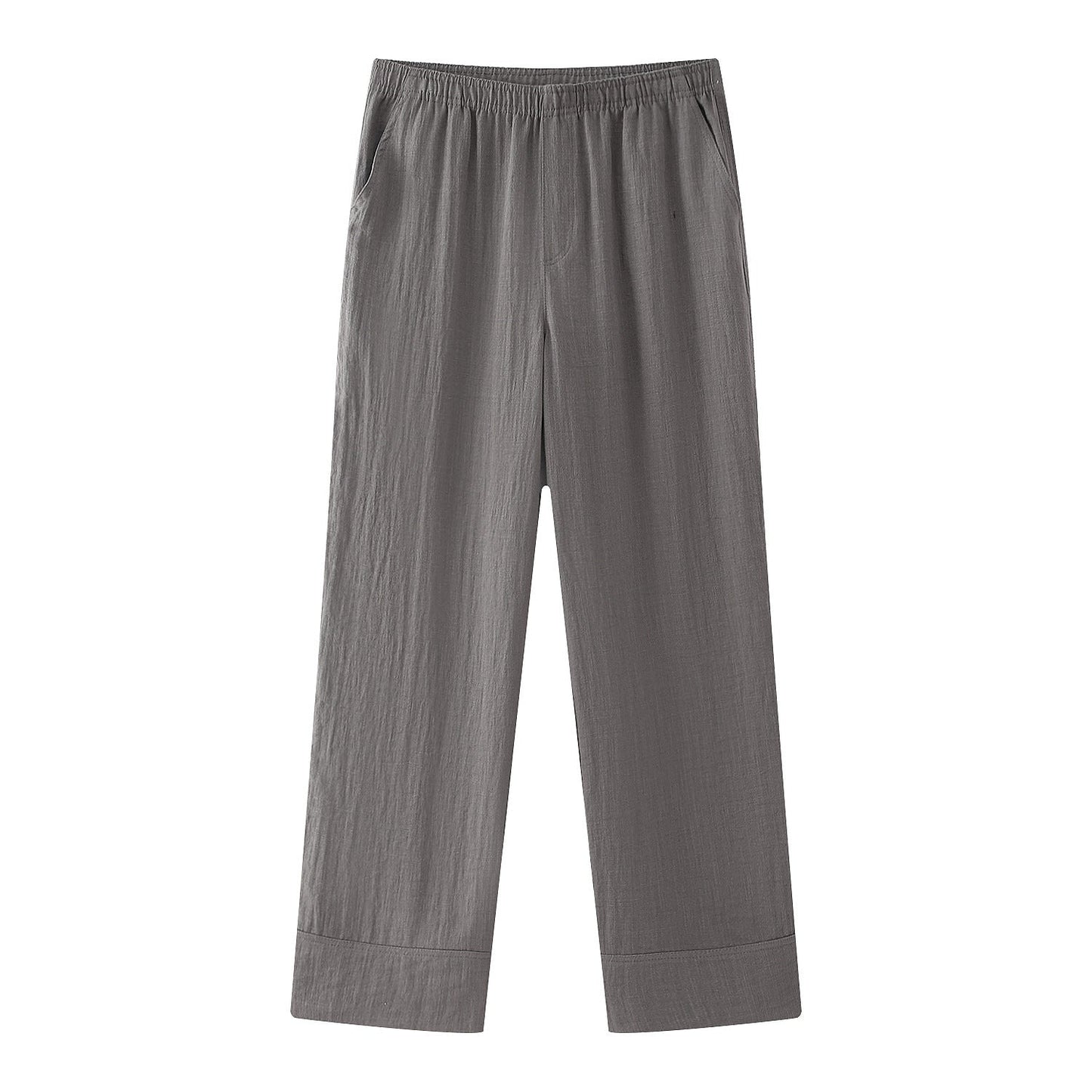 - Hög midja med elastiskt midjeband på byxorna