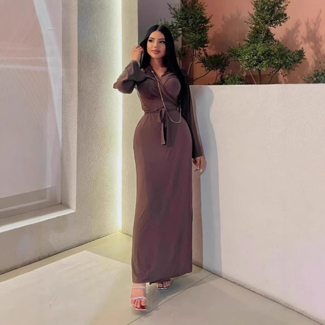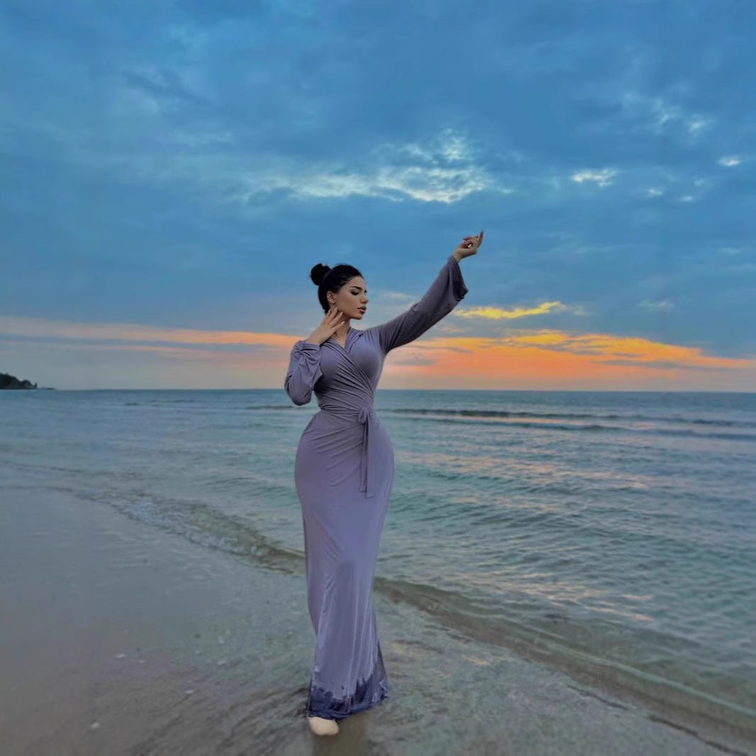Denna uppsättning kombinerar en lång skjorta med byxor, vilket ger en modern och avslappnad look. Designen är både tidlös och mångsidig, vilket gör den idealisk för olika tillfällen.